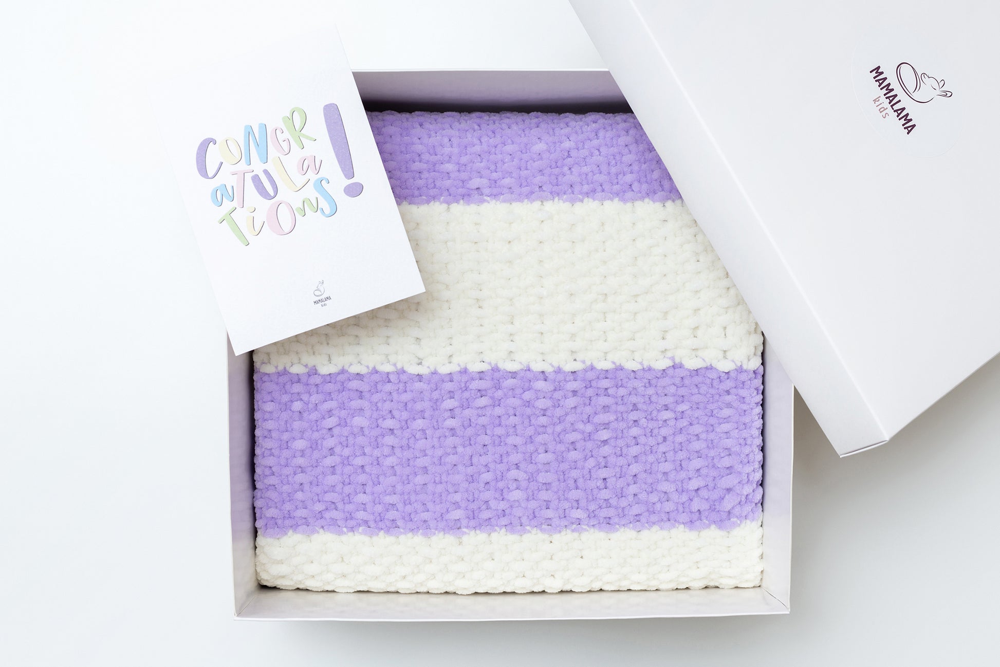 This is a gift box set which consists of a blanket, toy, tissue paper, and a cute white box. The blanket is 100x80 cm or 39.3x31.4 inches.