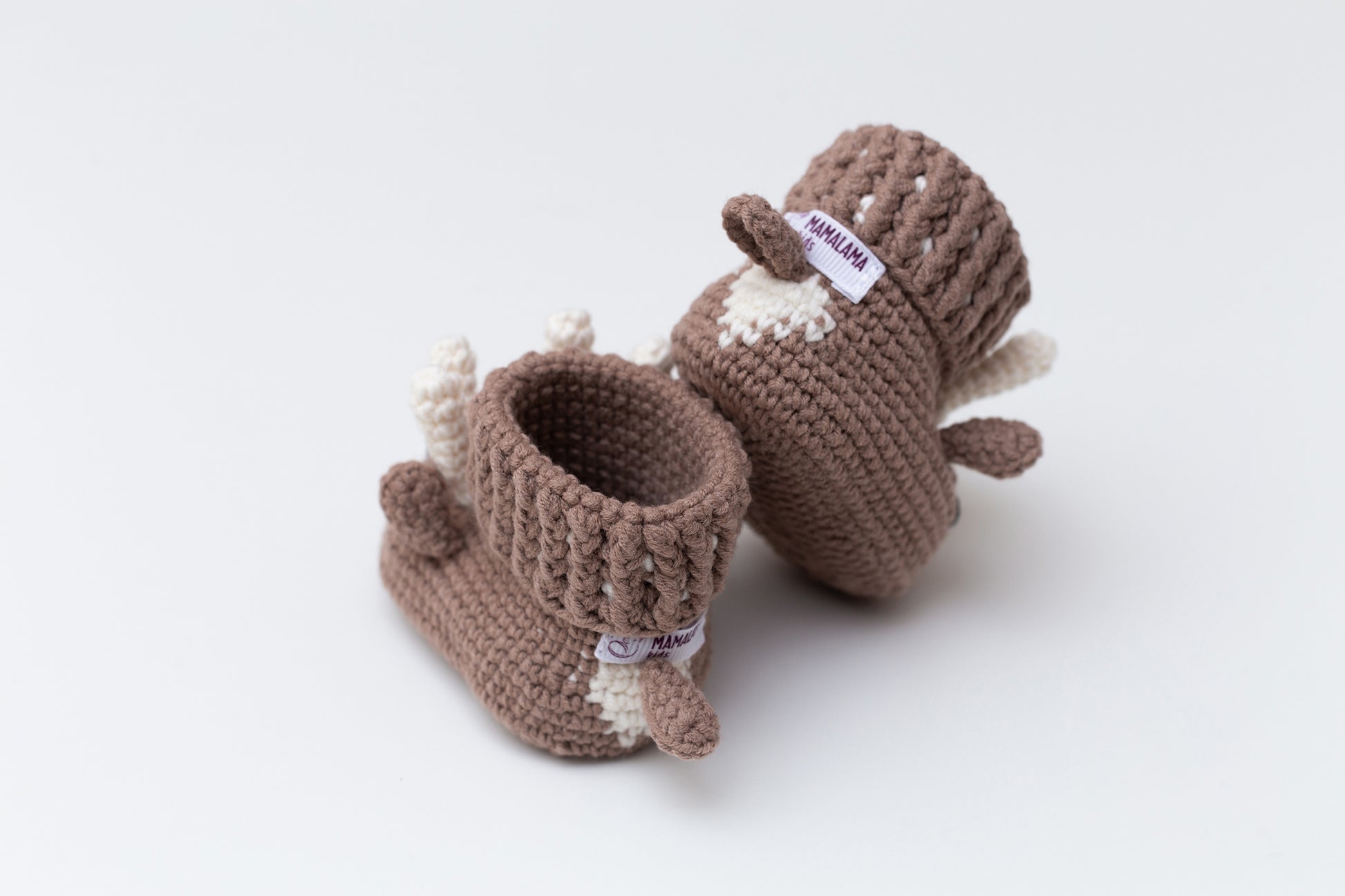 The booties are hand crocheted of baby cotton yarn so are suitable even for newborns as a toy or teether.
