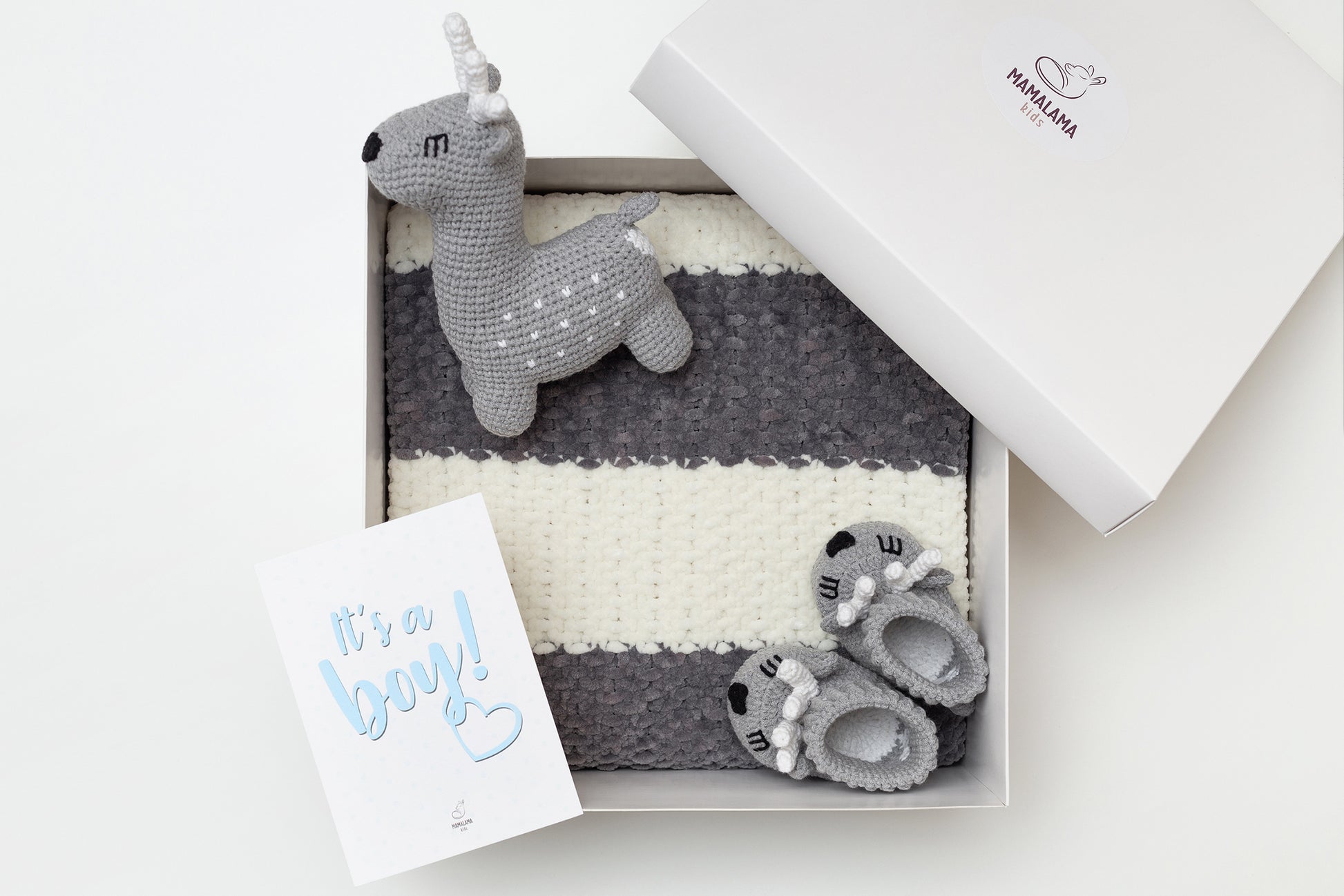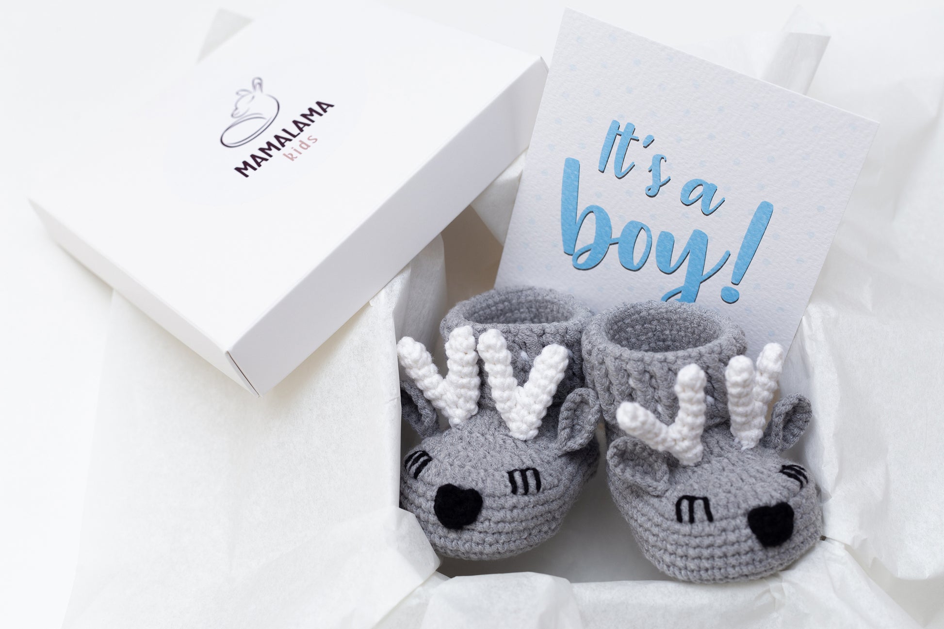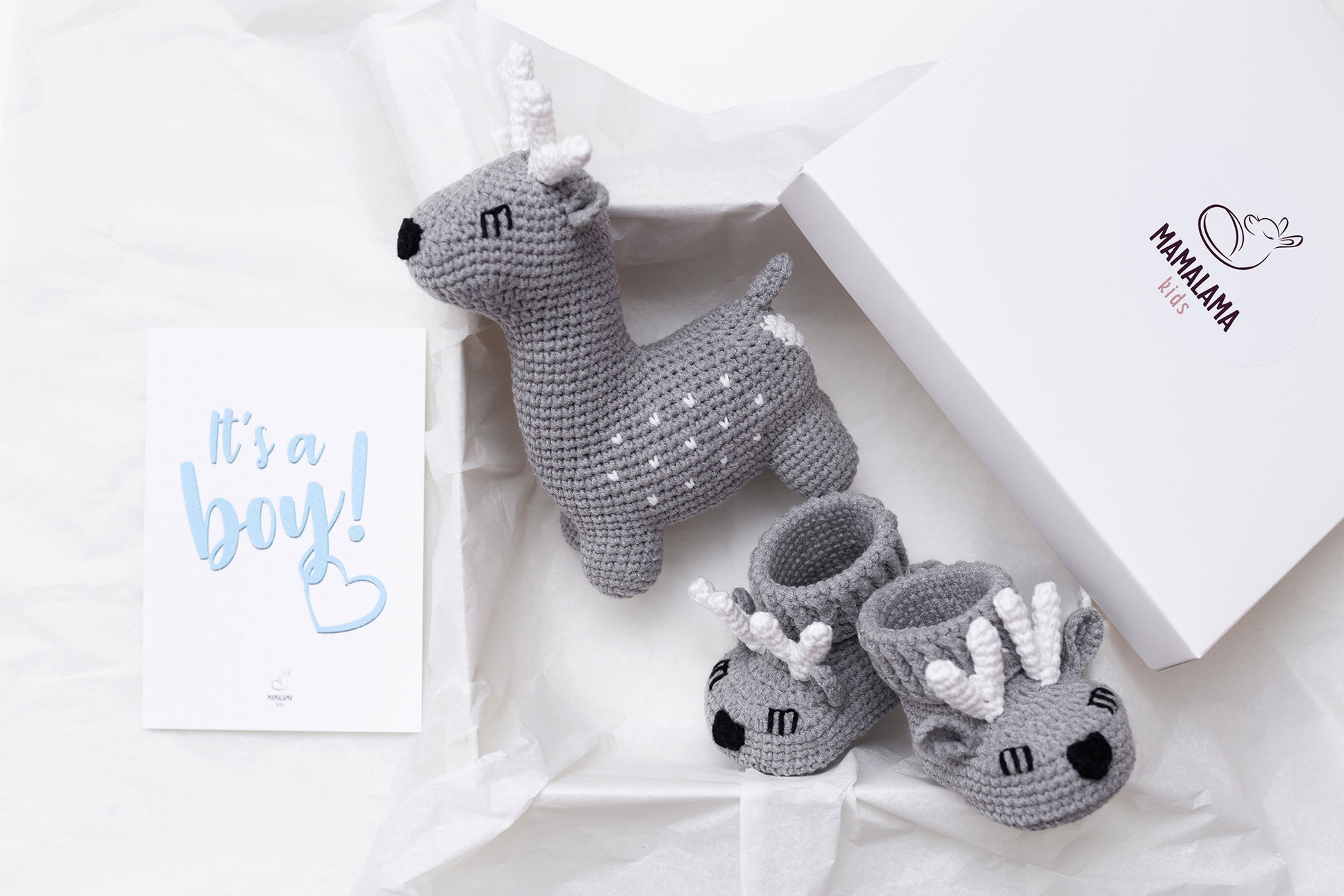 It's a boy deer booties baby gift box Gray