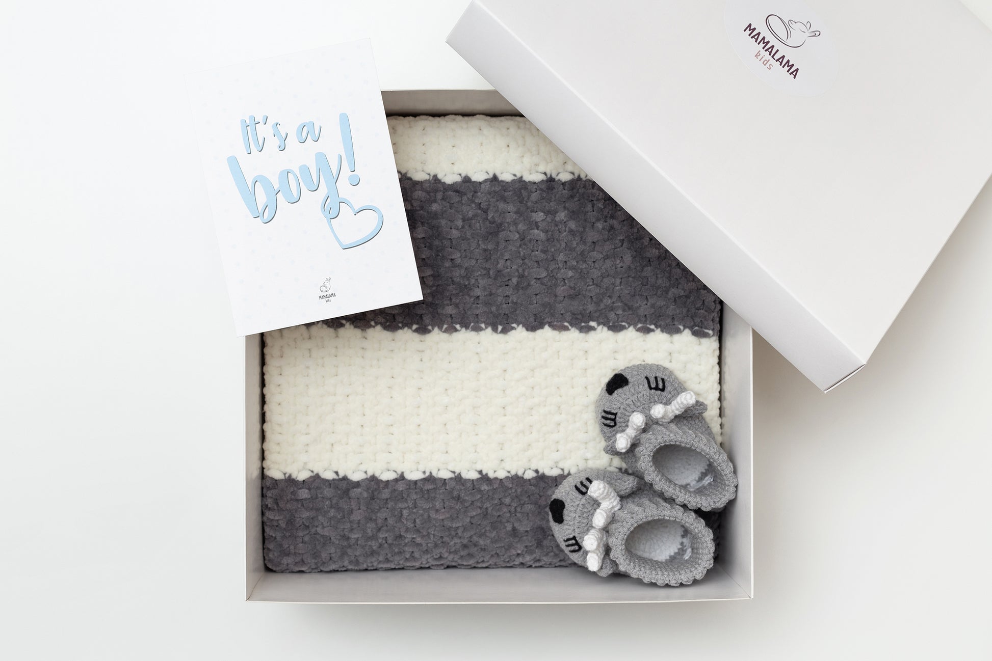 This is a gift box set which consists of booties, tissue paper, and a cute white box.