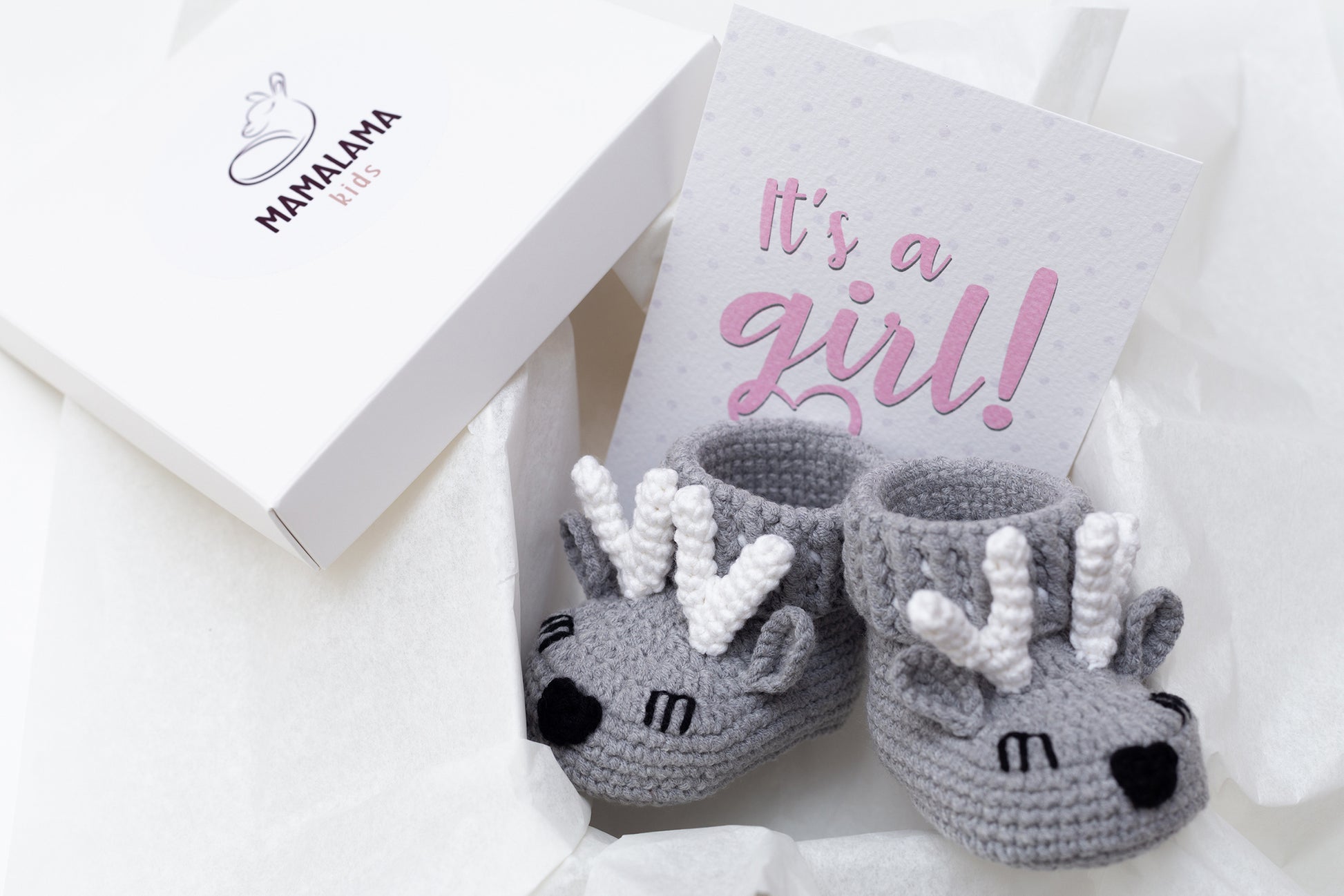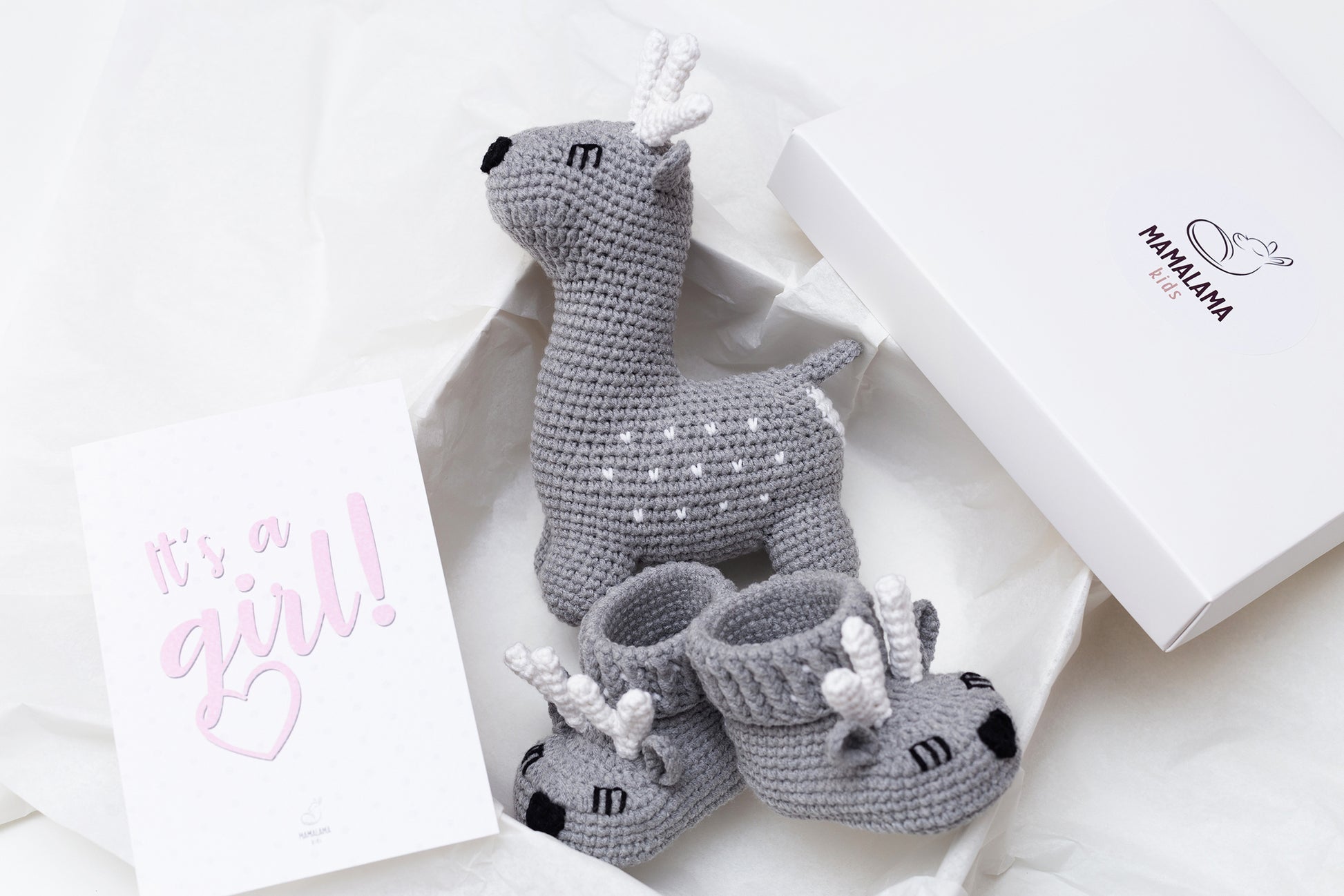 It's a girl deer booties baby gift box Gray