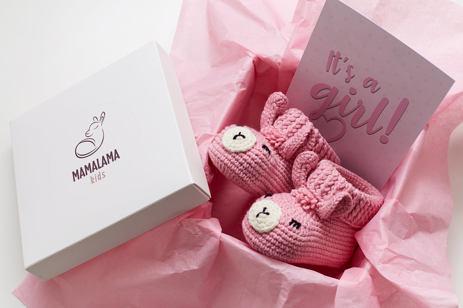 This is a gift box set which consists of booties, tissue paper, and a cute white box.