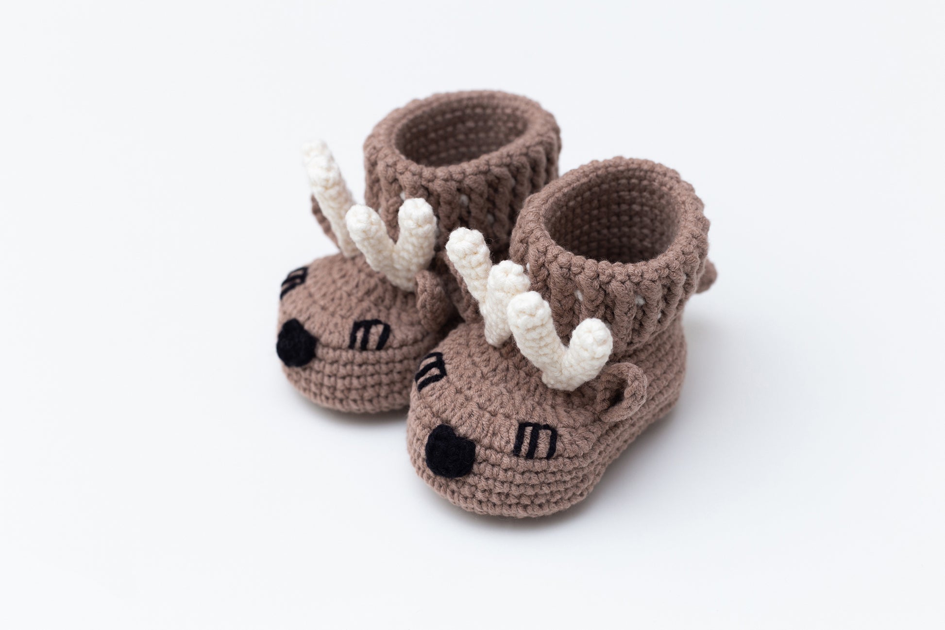 The deer reindeer booties size is 0-2 months. If you need another size, please let me know.