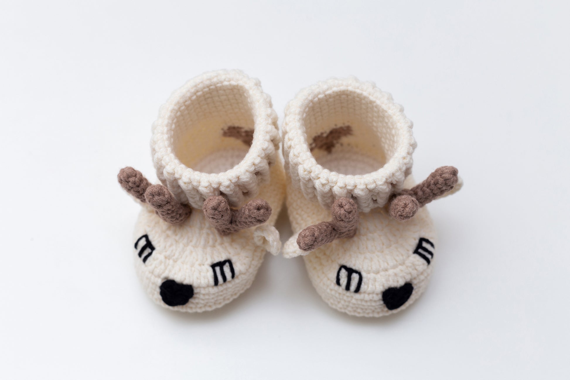 The deer booties are hand-crocheted of baby cotton yarn and absolutely safe for newborns.