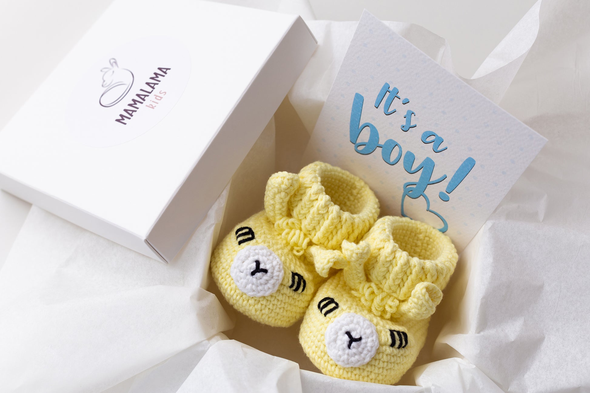 This is a gift box set which consists of booties, tissue paper, and a cute white box.