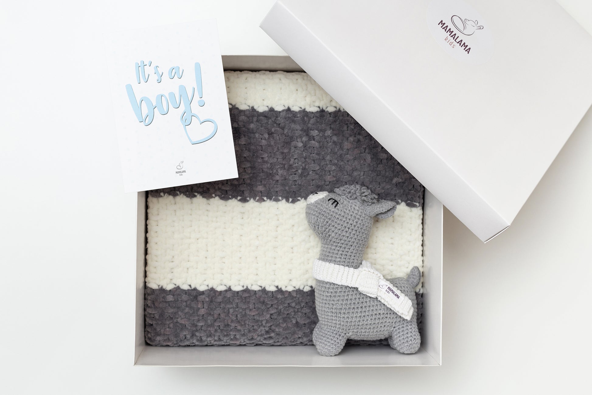 It's a Boy Llama toy & blanket gift box Gray Off white