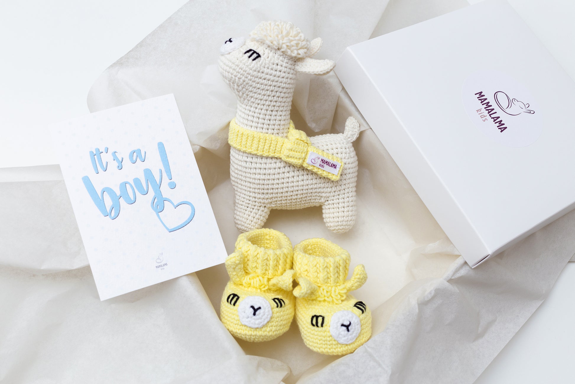 It's a Boy Llama toy & booties gift box Yellow Off white