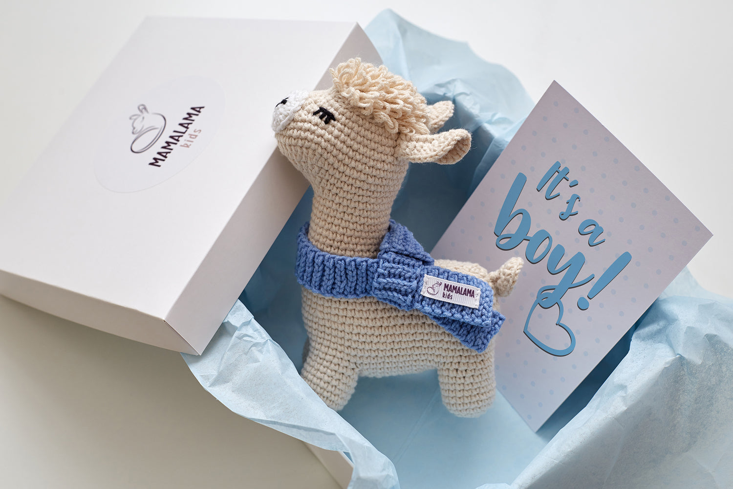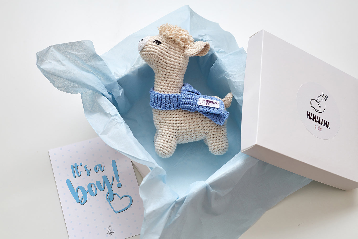 Unique pregnancy It's a Boy gift box for mom to be. Farm llama congratulations basket.