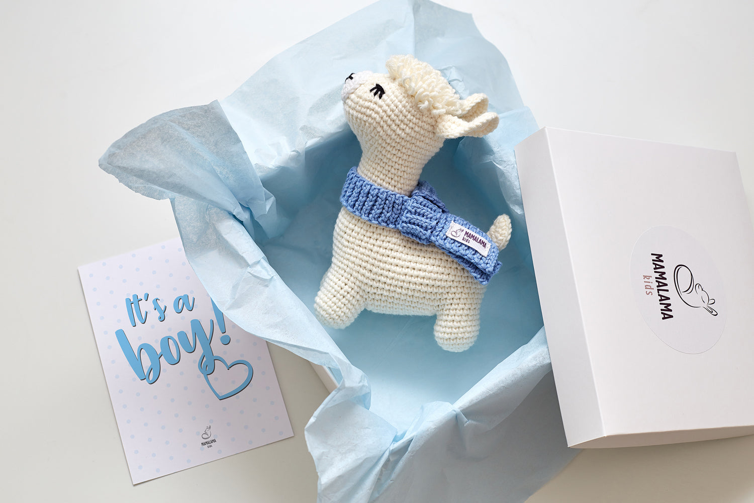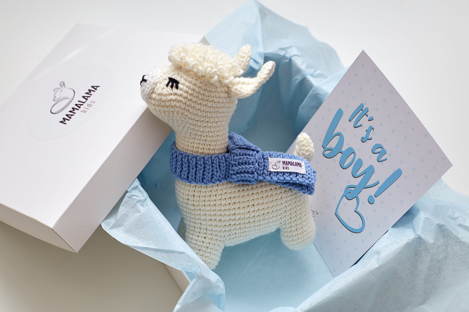 Unique It's a Boy pregnancy gift box for mom to be. Farm llama congratulations basket.