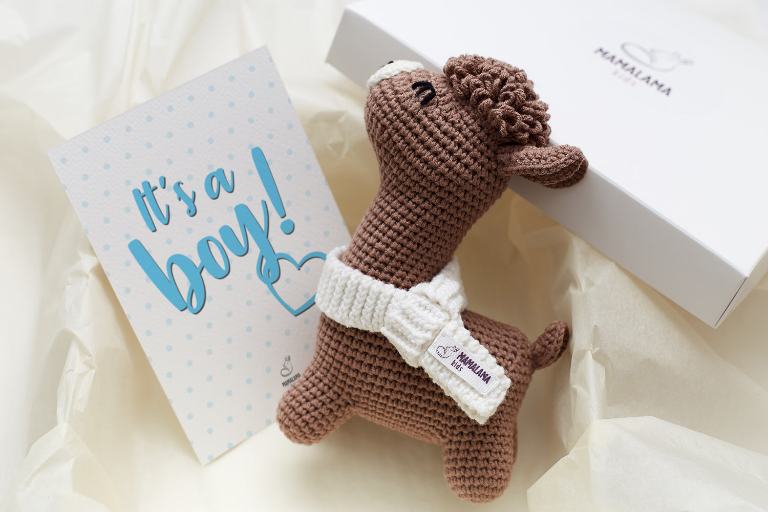 Unique It's a Boy pregnancy gift box for mom to be. Farm llama congratulations basket.