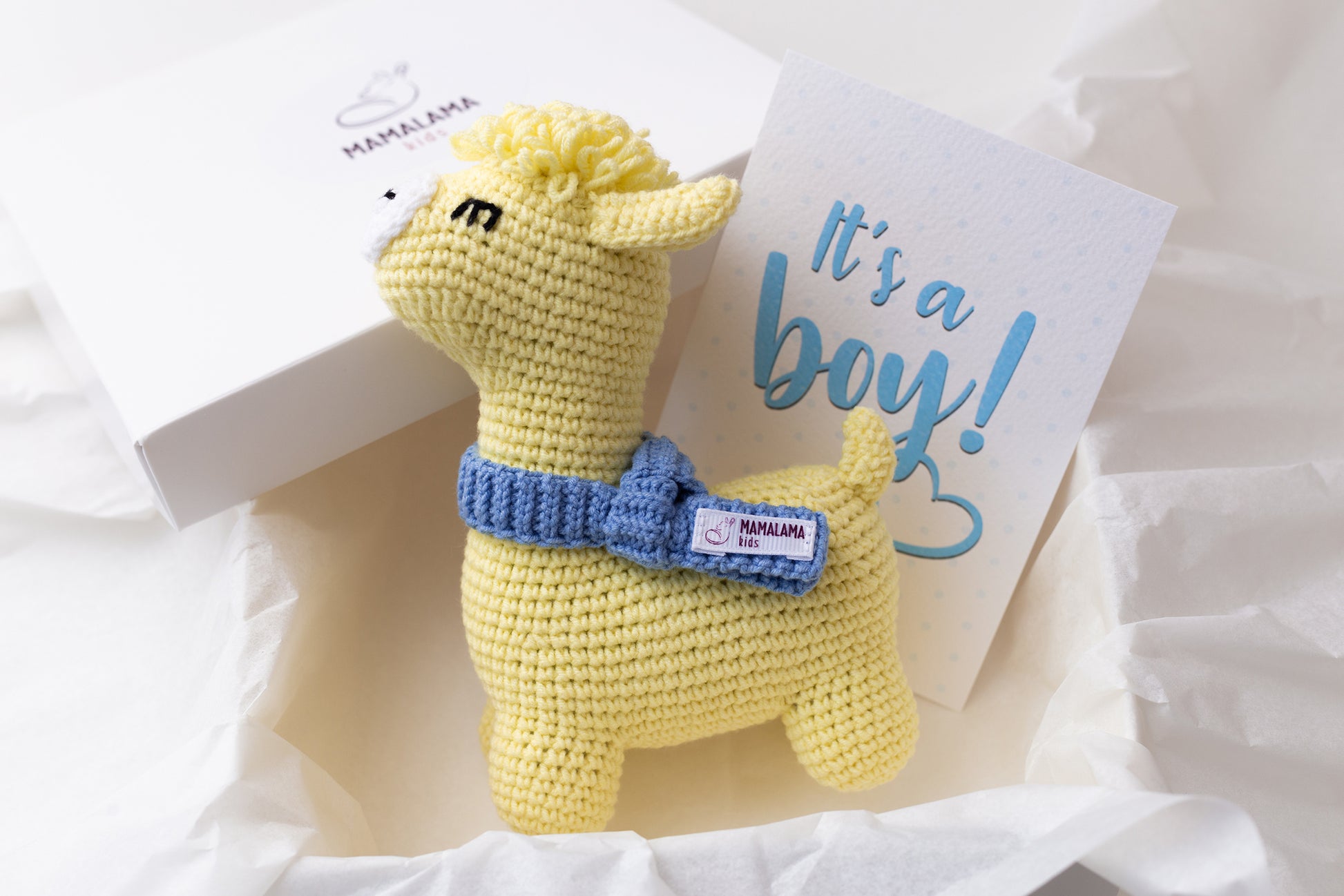 Unique It's a Boy pregnancy gift box for mom to be. Farm llama congratulations basket.