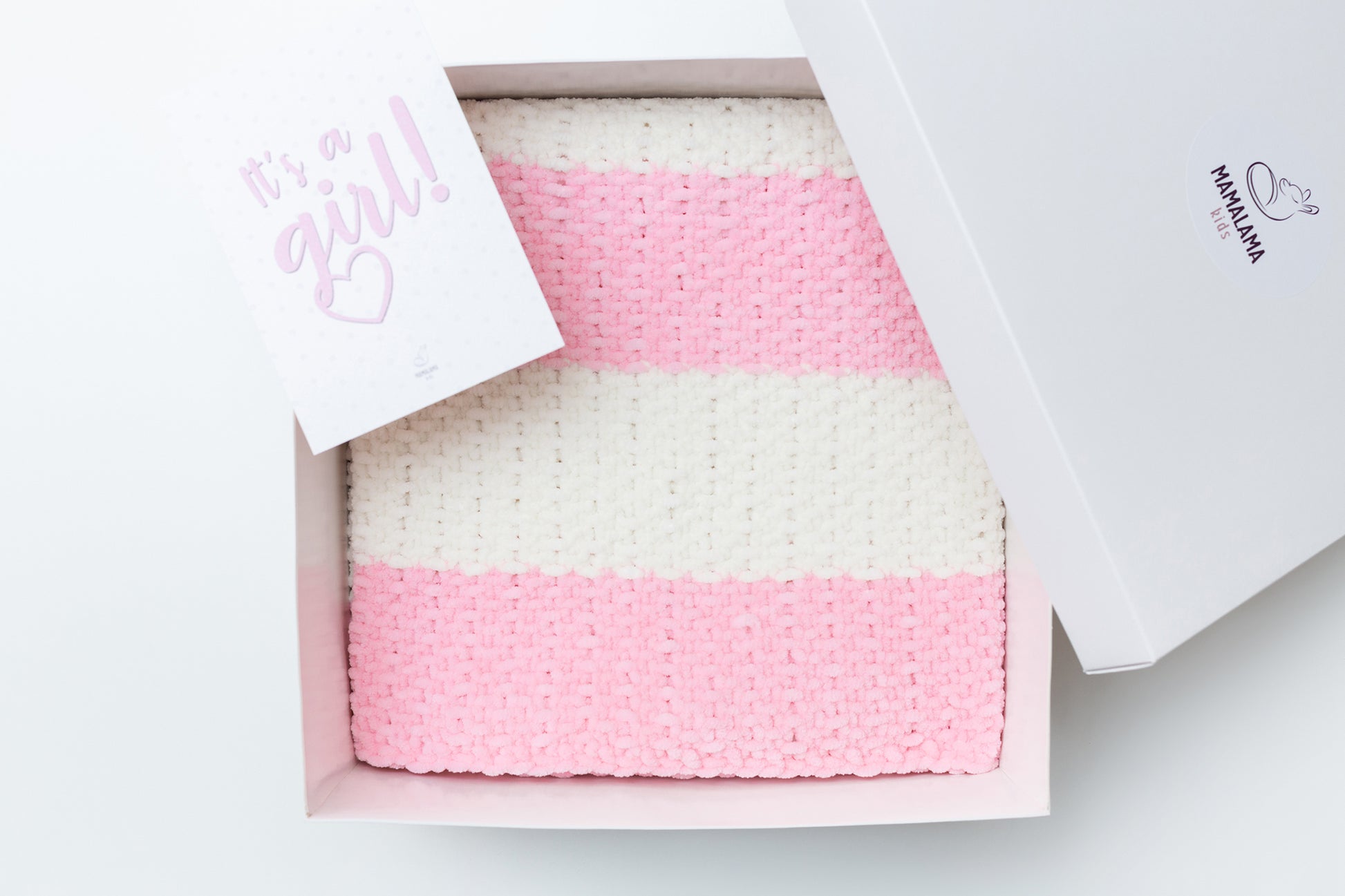 The soft baby blanket is the best It's a Girl baby gift! It will also be a perfect receiving blanket, pram blanket or stroller blanket. Very soft and nice to touch, suits great to baby bed or protects it during walks. Super-wash, hypoallergic, created especially for kids! It is absolutely handmade, soft, cute and comfy.