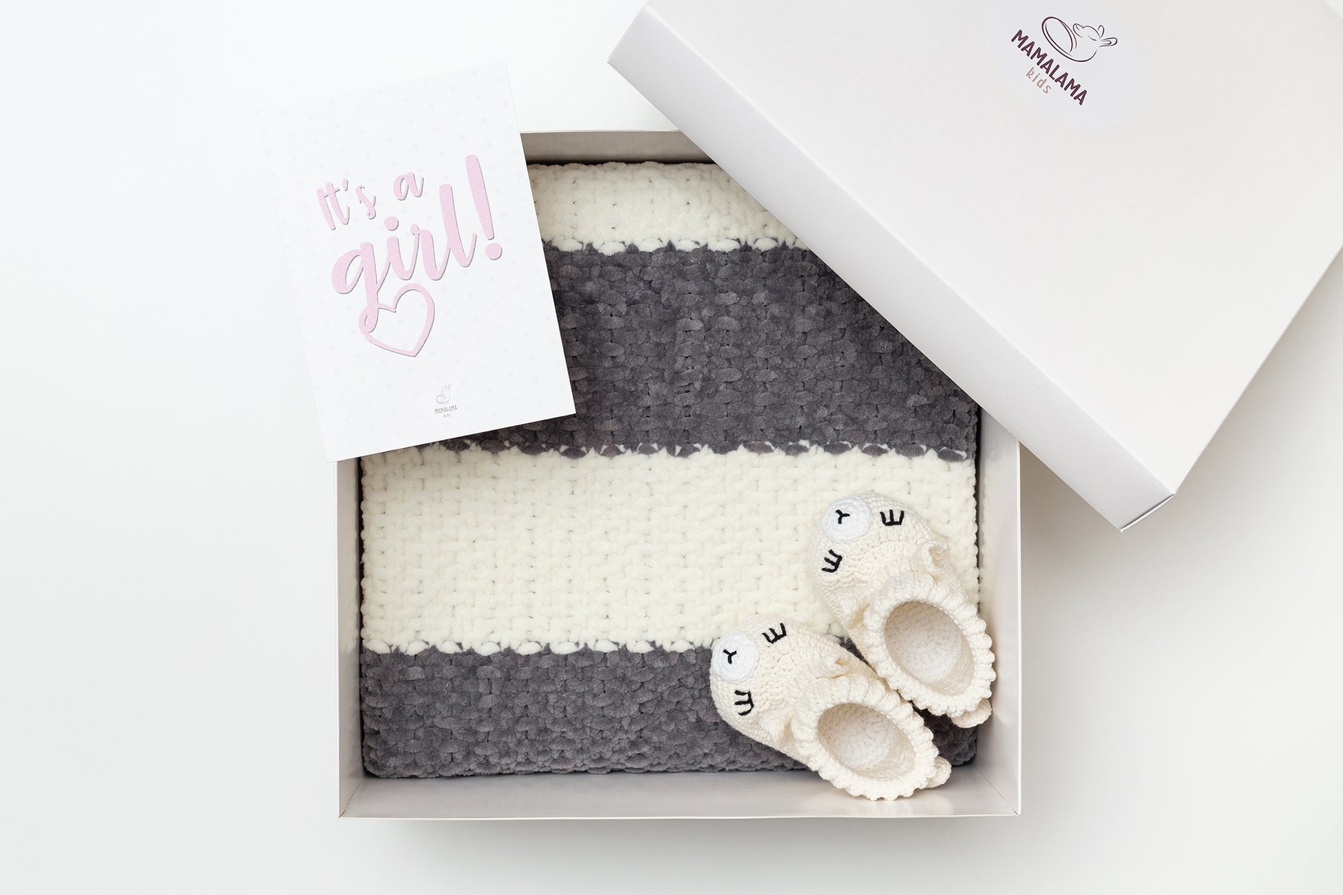 It's a Girl Baby blanket & llama booties gift box Gray