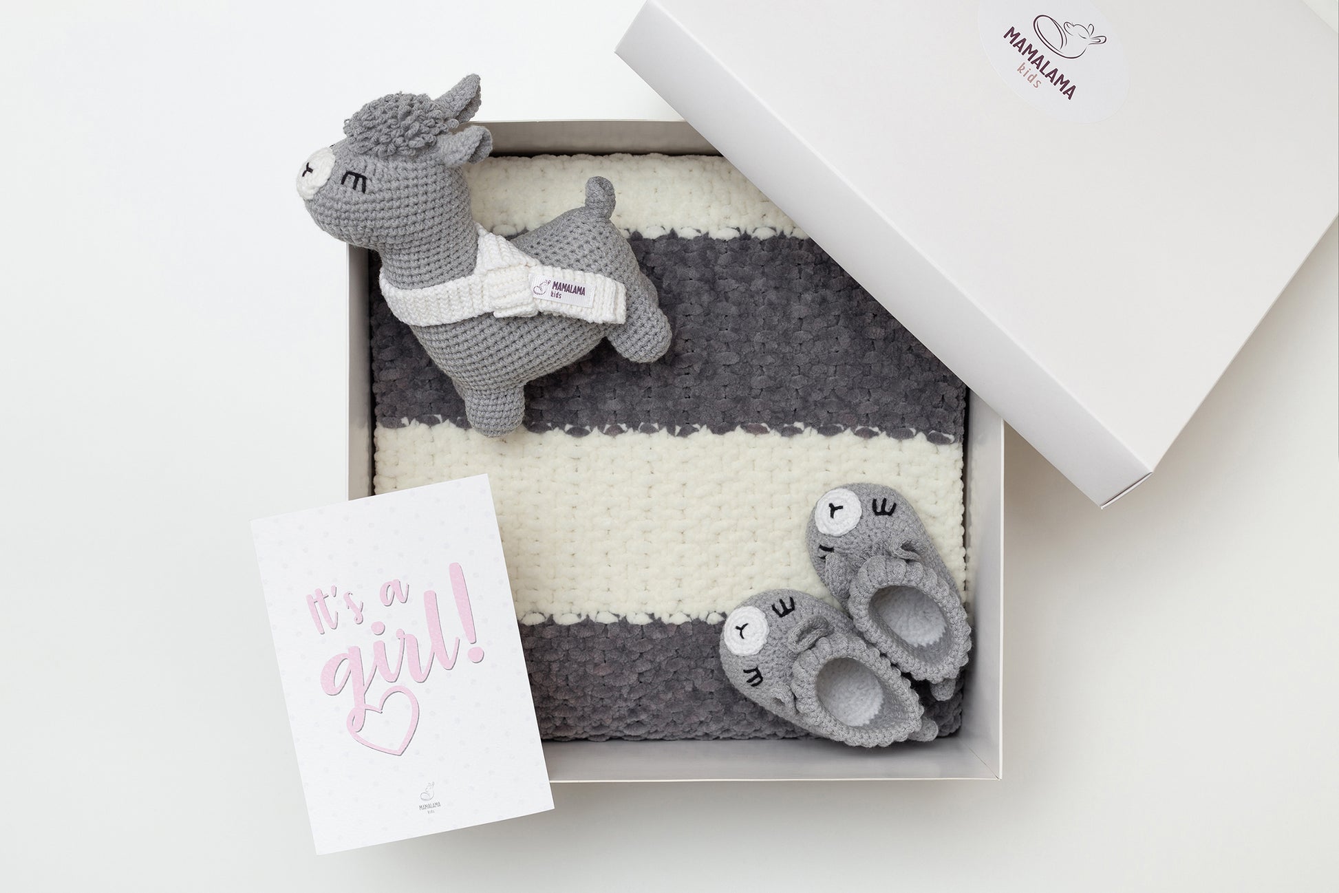 It's a Girl Llama toy & blanket & booties gift box Gray