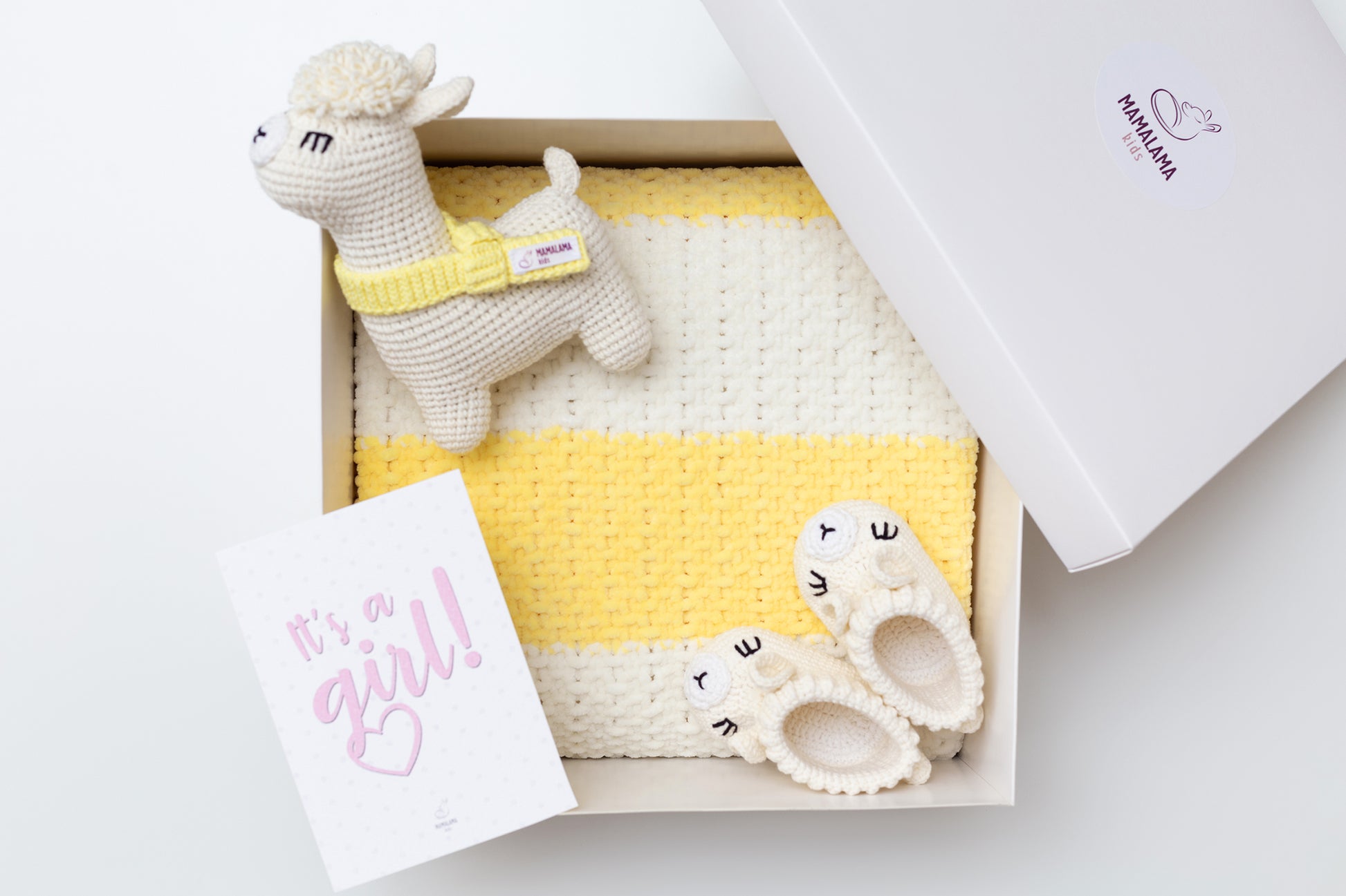 It's a Girl Llama toy & blanket & booties gift box Yellow