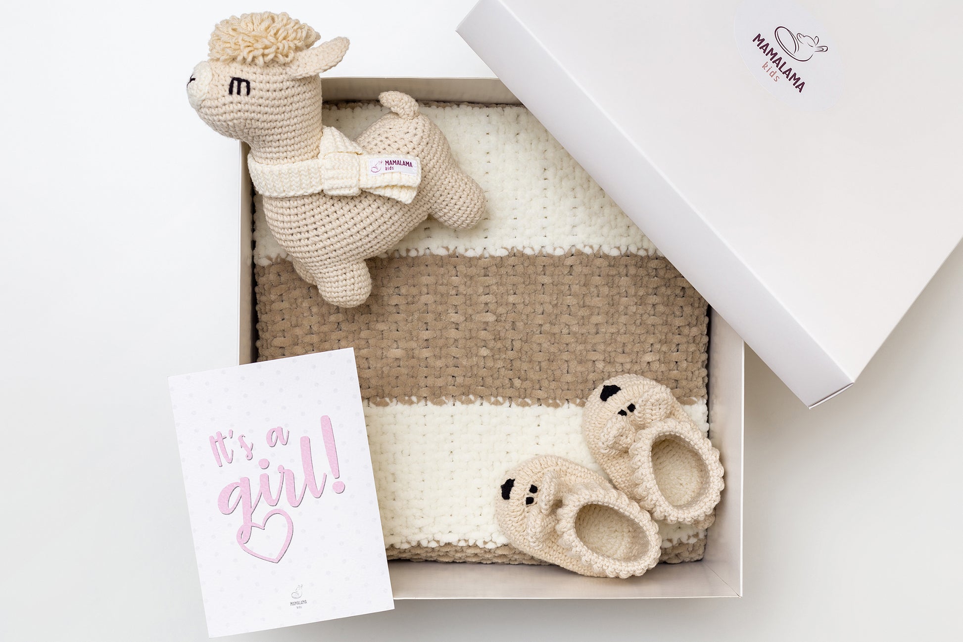 It's a Girl Llama toy & blanket & bunny booties gift box Beige