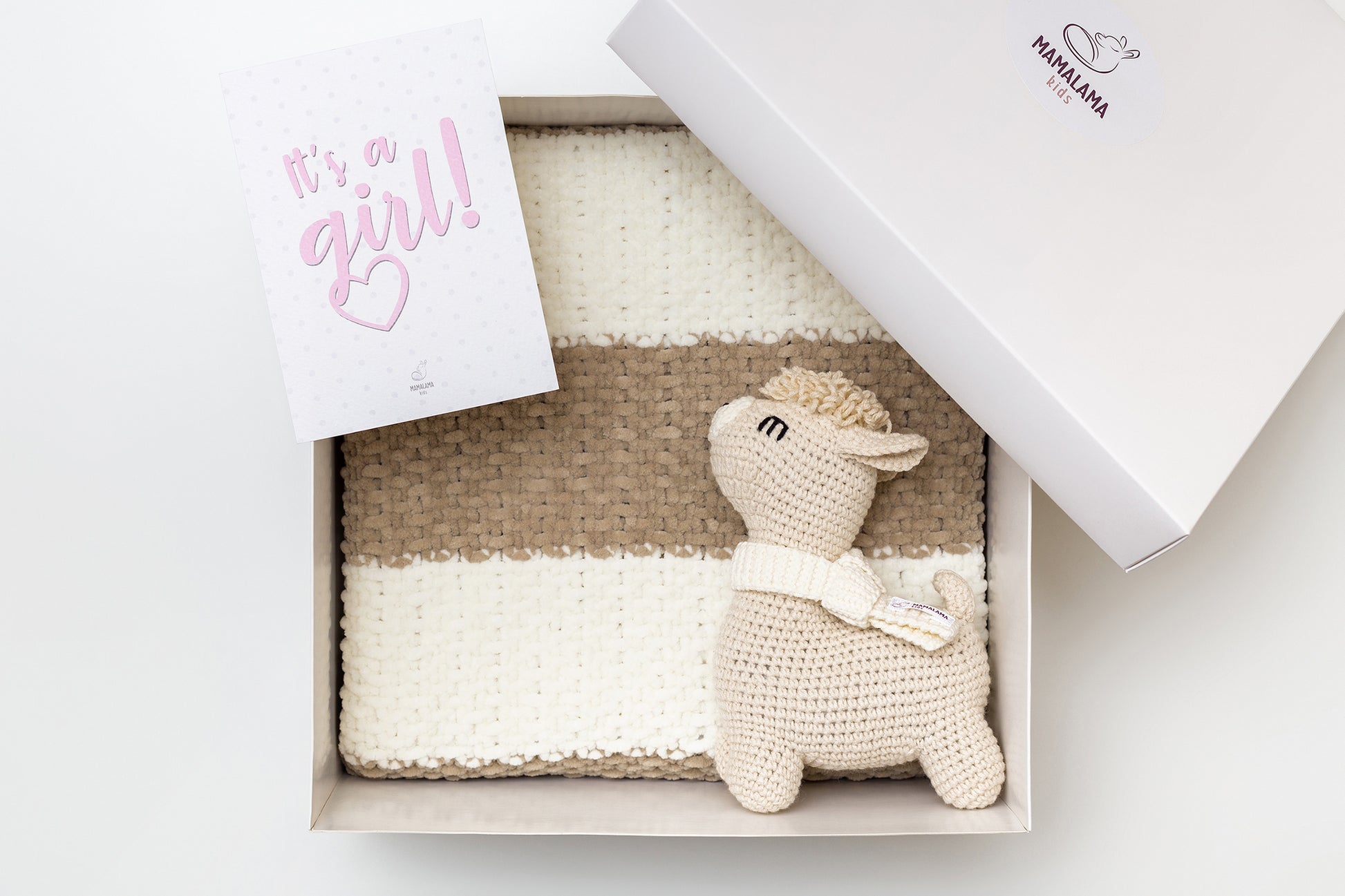It's a Girl Llama toy & blanket gift box Beige
