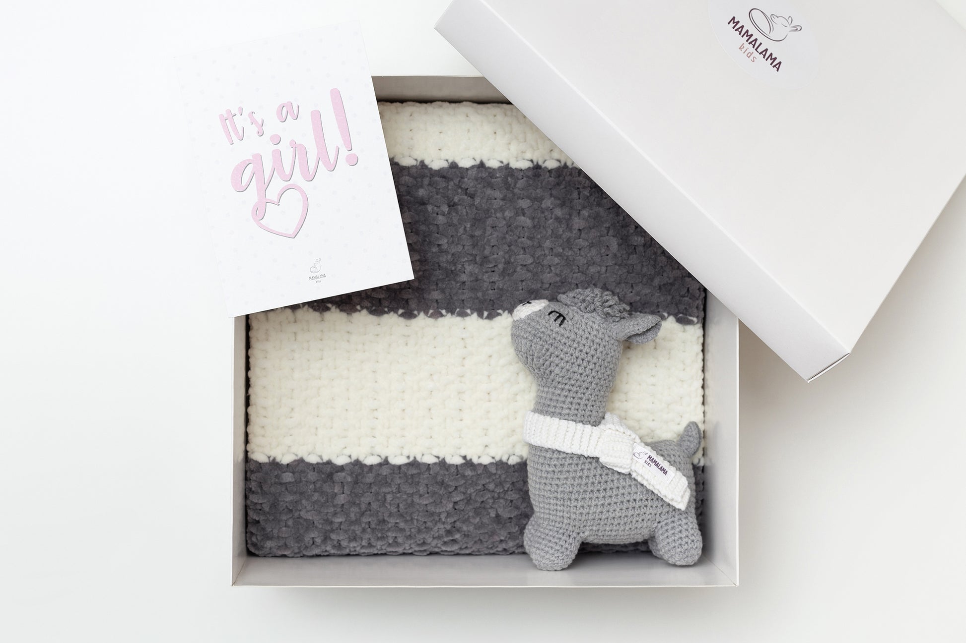It's a Girl Llama toy & blanket gift box Gray Off white