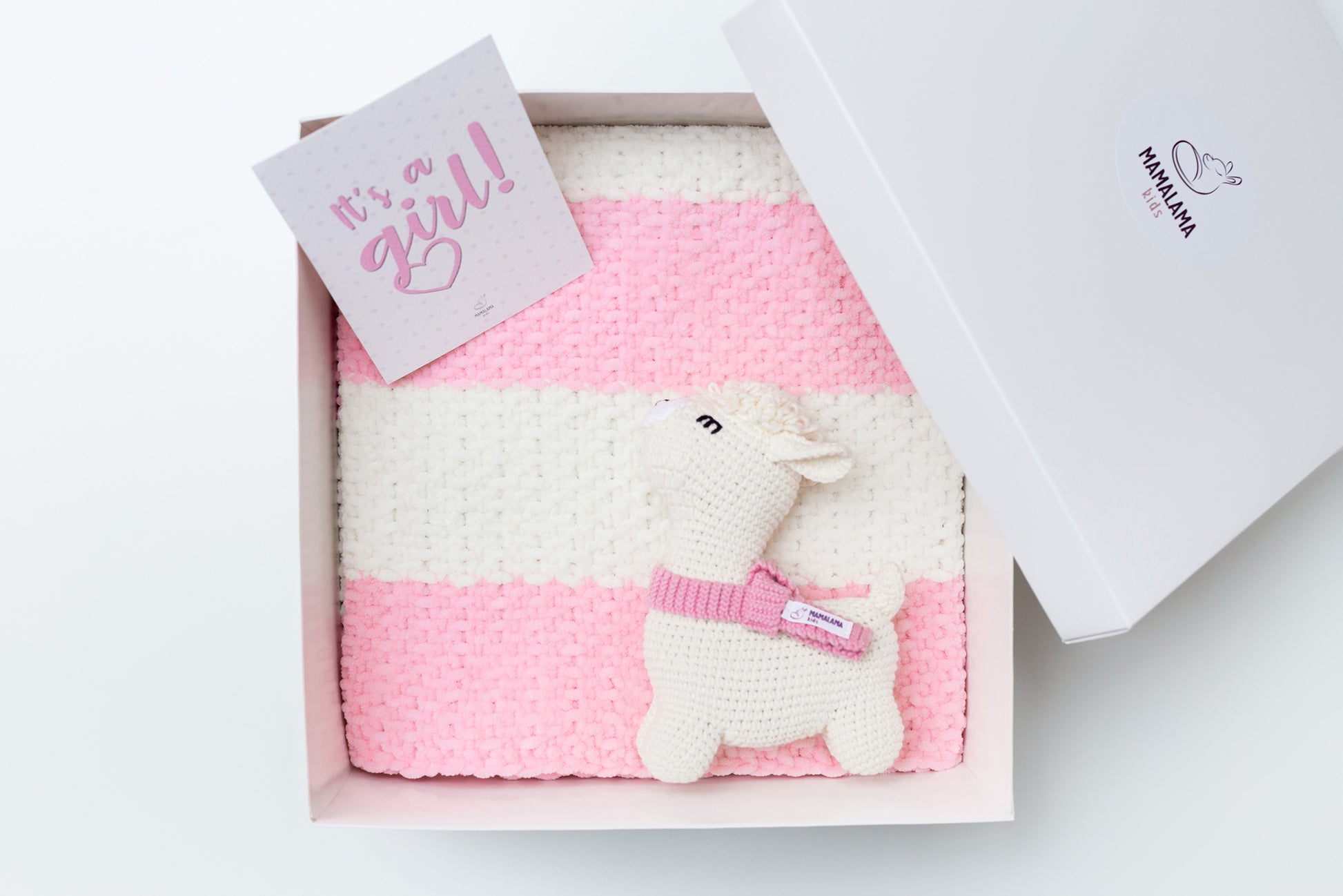 It's a Girl Llama toy & blanket gift box Pink Off white