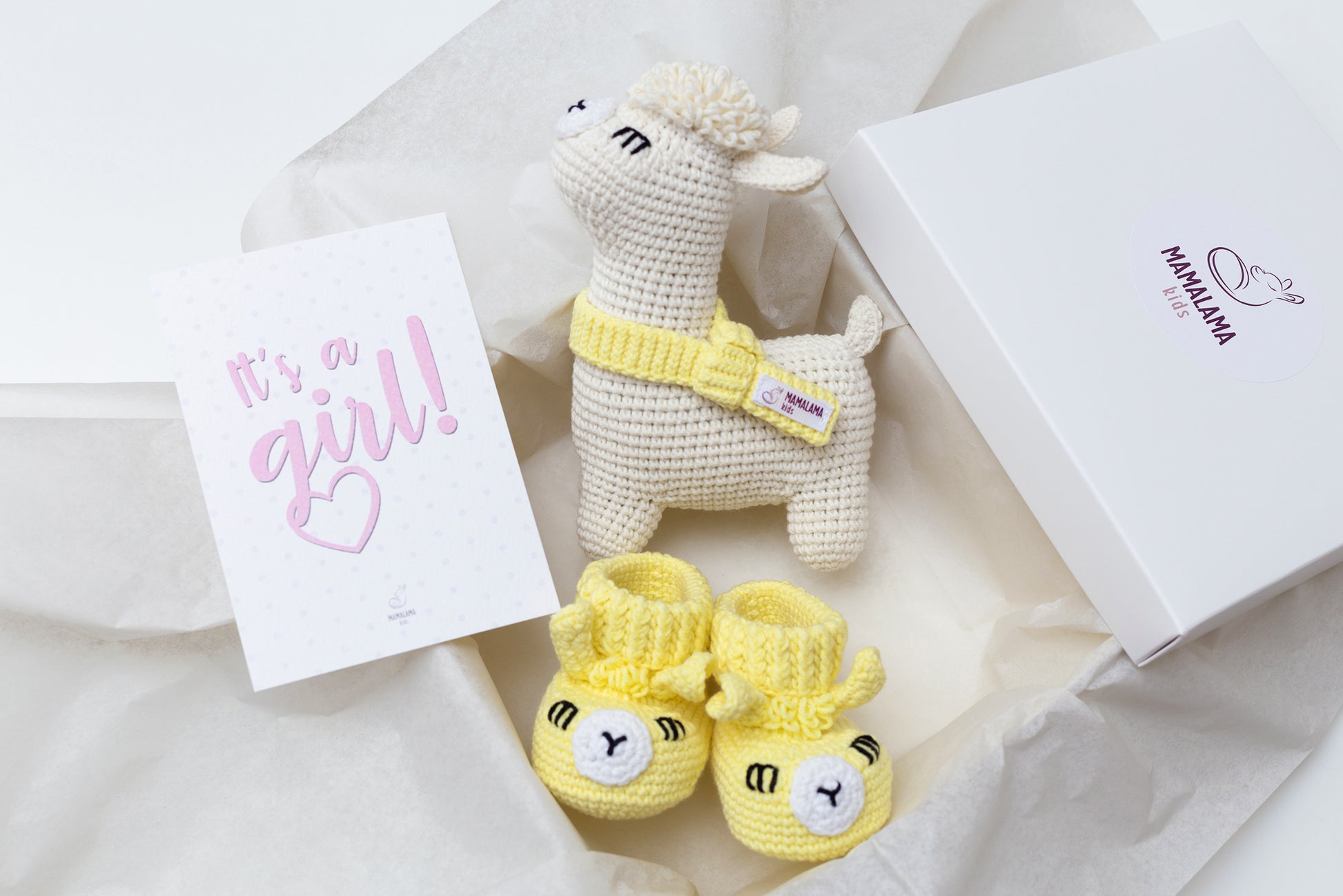 It's a Girl Llama toy & booties gift box Yellow