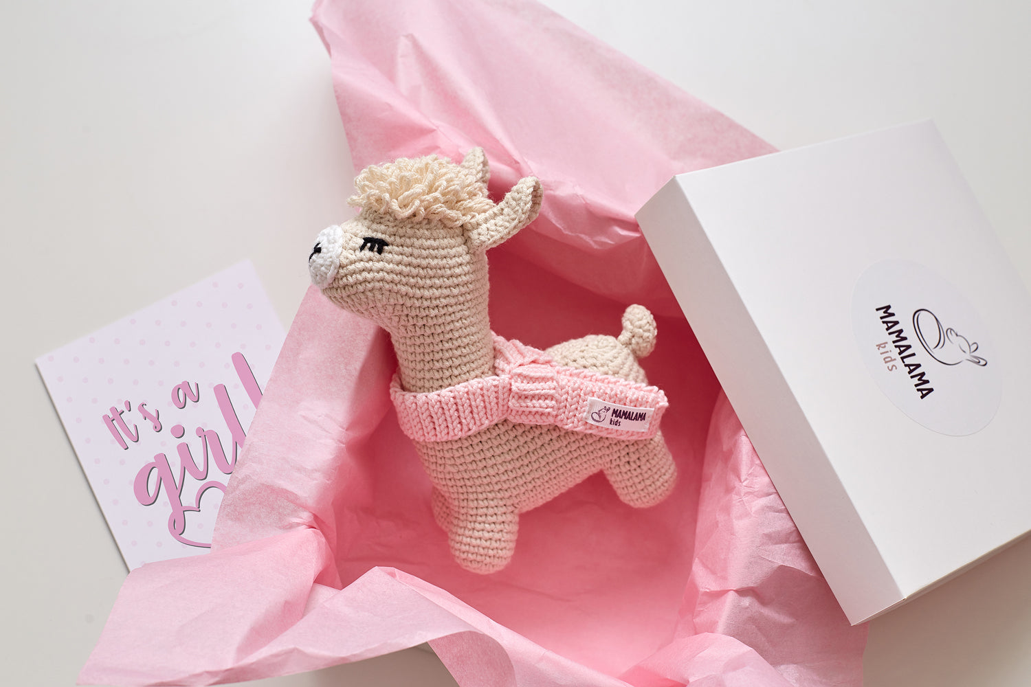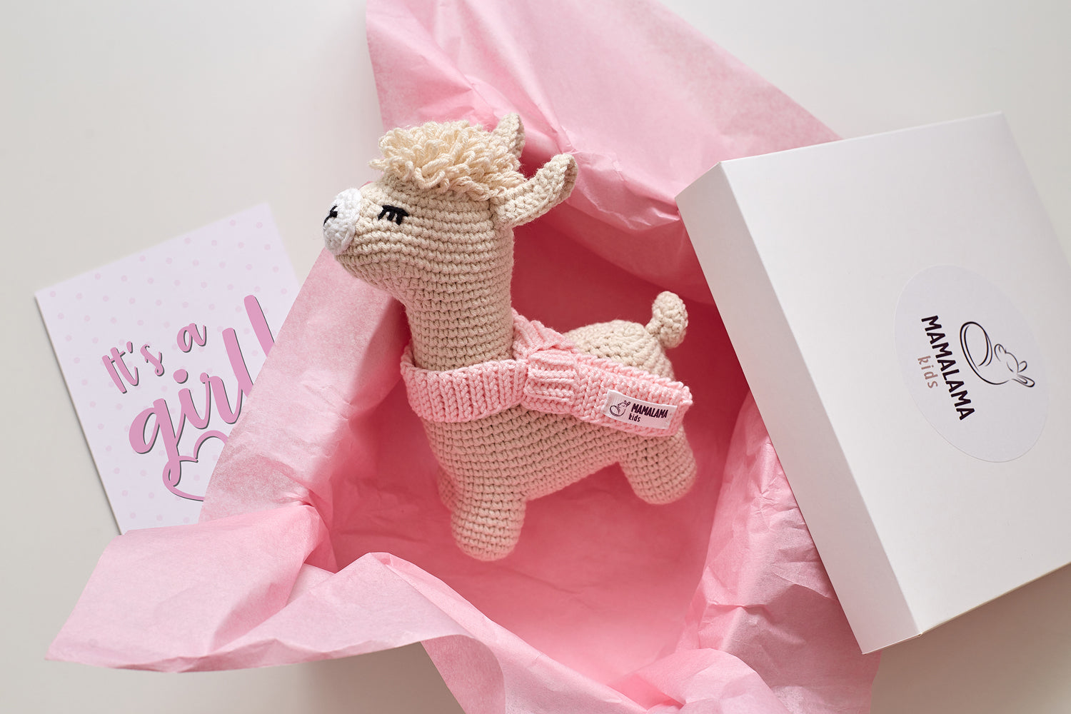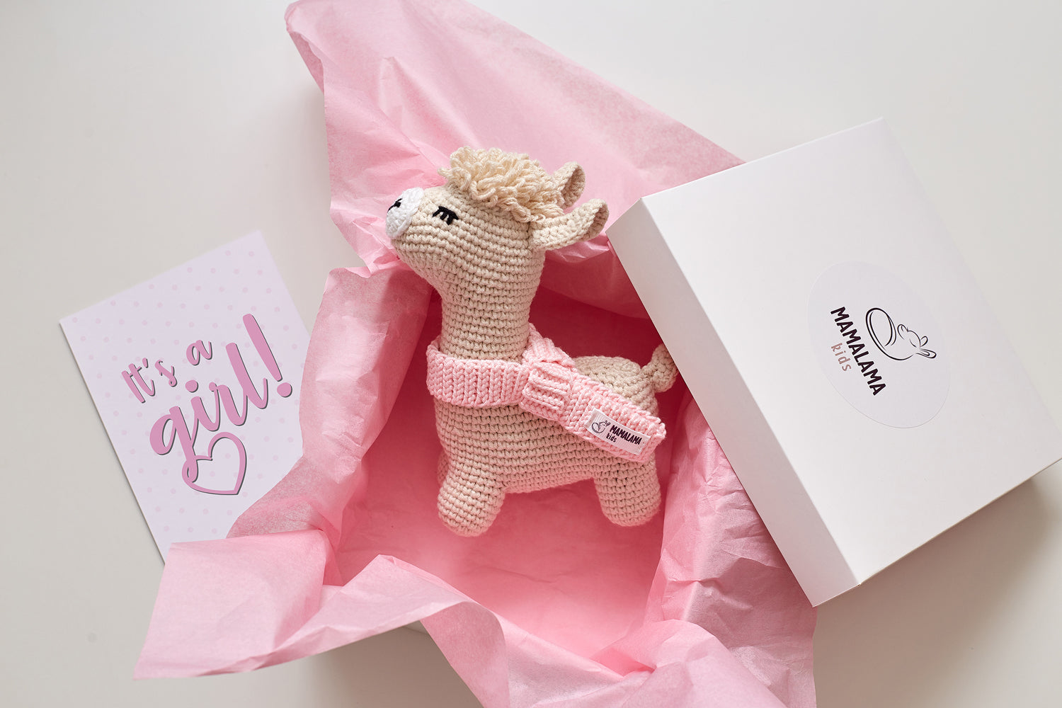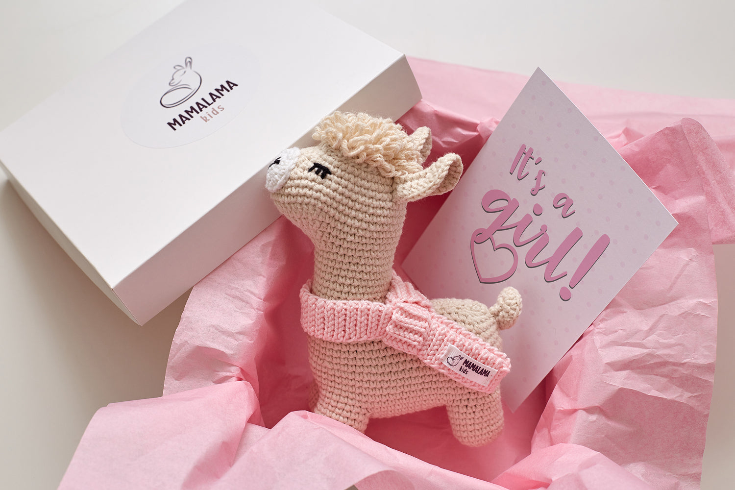 Unique pregnancy It's a Girl gift box for mom to be. Farm llama congratulations basket.