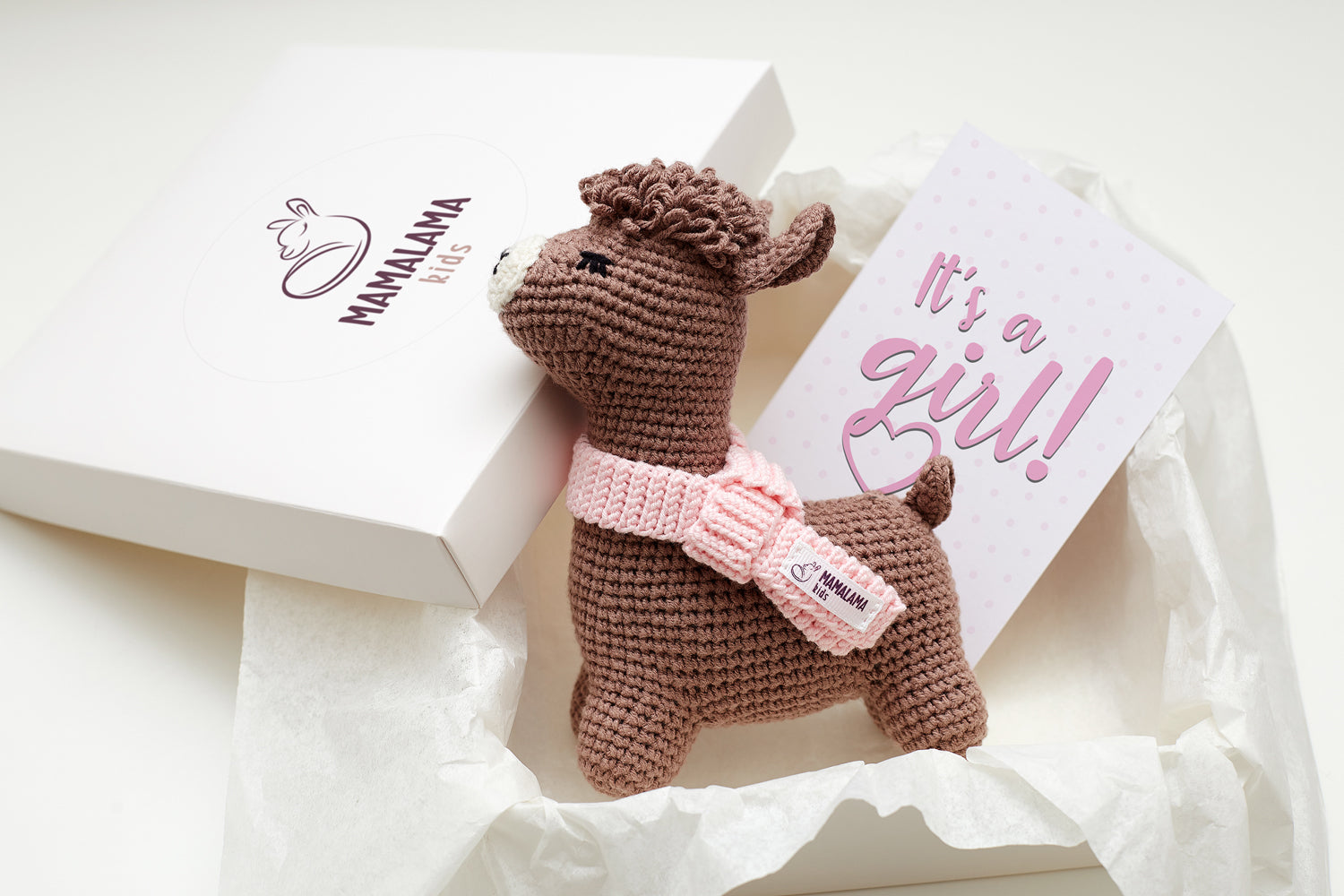 Unique pregnancy It's a Girl gift box for mom to be. Farm llama congratulations basket.