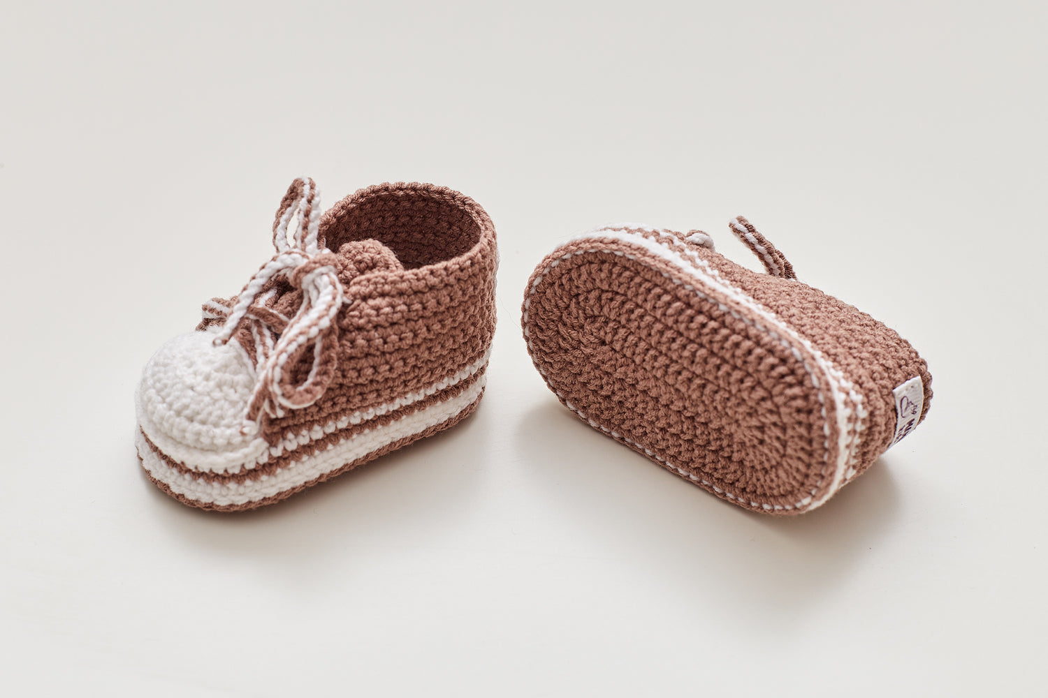 The booties are hand crocheted of baby cotton yarn so are suitable even for newborns as a toy or teether.