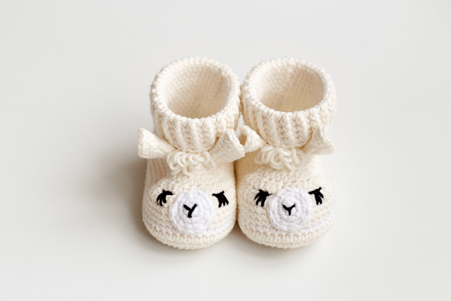 Unique pregnancy gift box pregnant woman or for mom to be with cute animal booties. Farm llama newborn soft sole shoes congratulations basket.