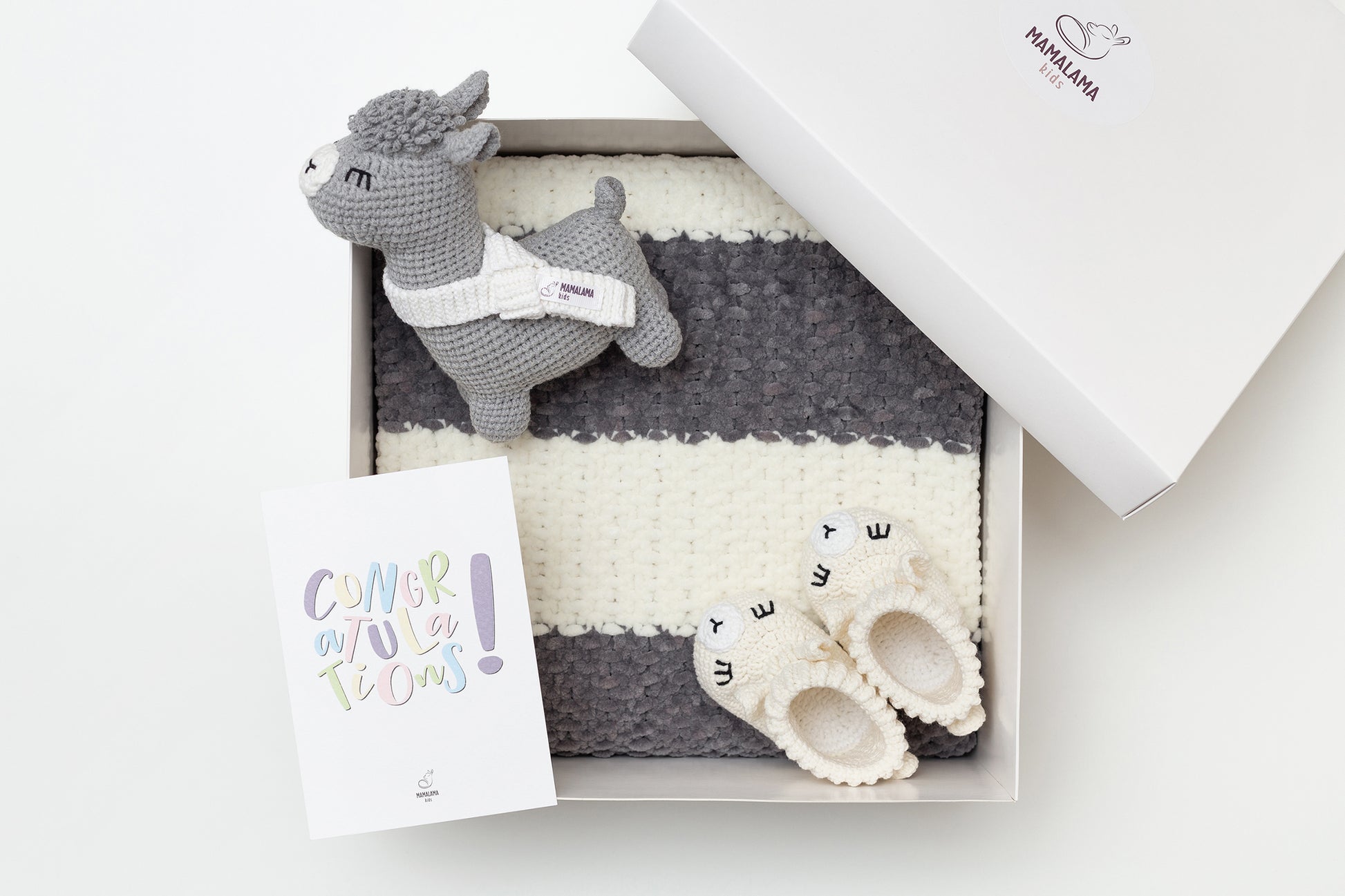 Llama toy & blanket & booties gift box Gray