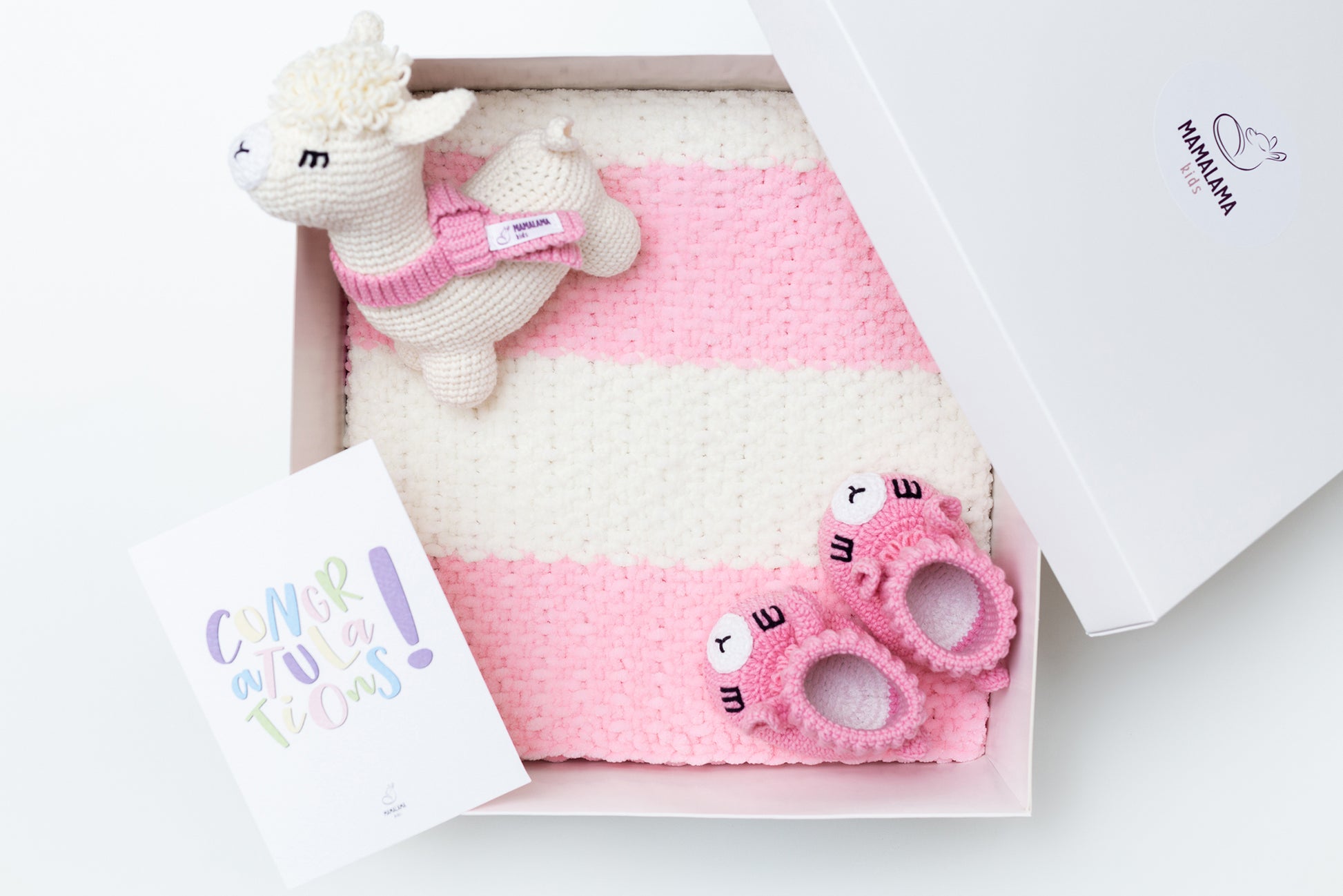 Llama toy & blanket & booties gift box Pink