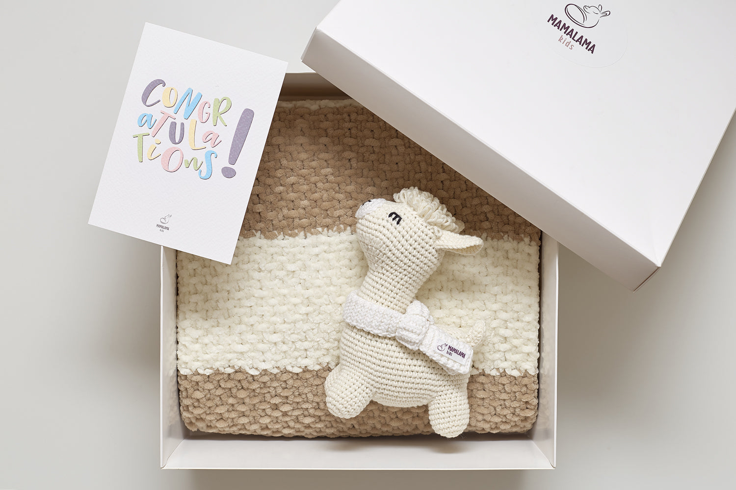 This is a gift box set which consists of a blanket, toy, tissue paper, and a cute white box. The blanket is 100x80 cm or 39.3x31.4 inches.
