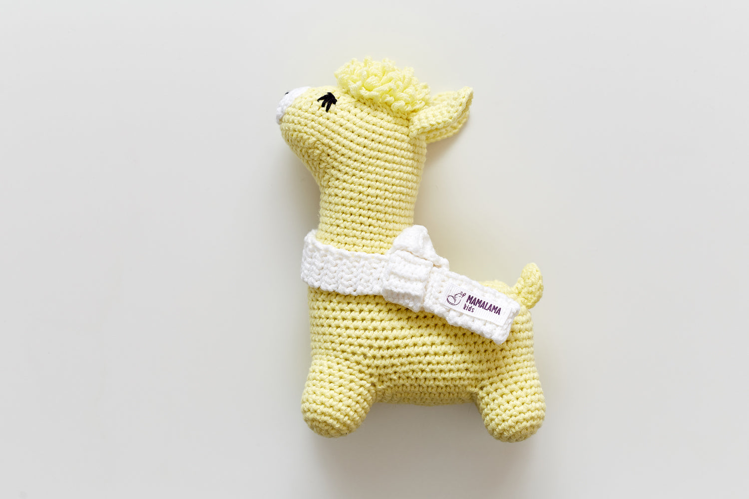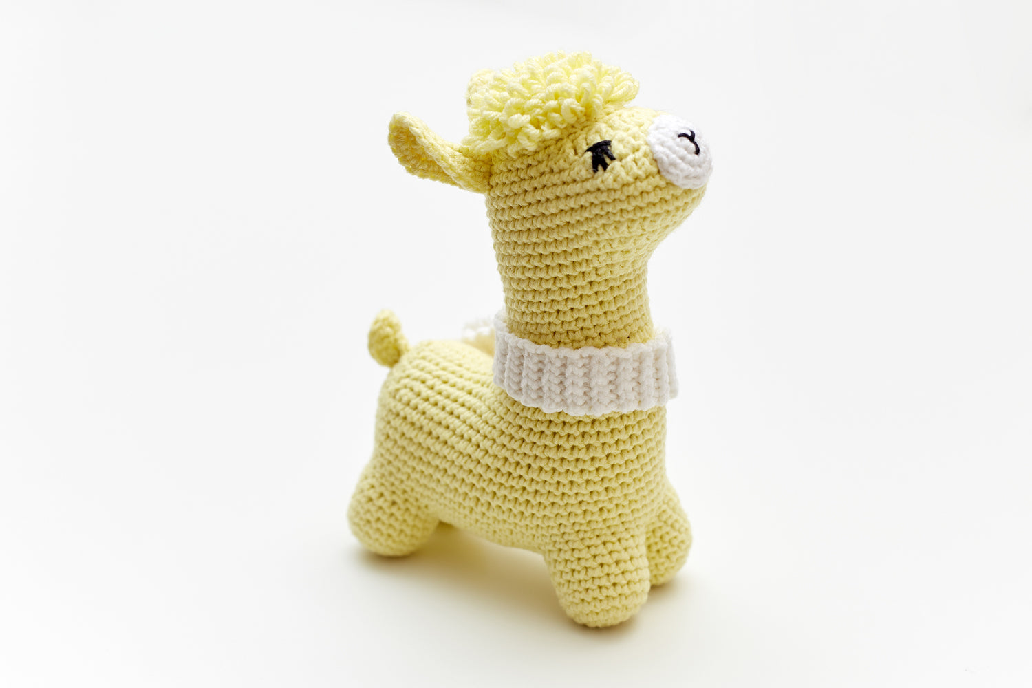 The toy is 16 cm (6.29 inch) high. Just perfect size for play, joy and decor. The toy and the booties are hand crocheted of the baby cotton yarn so are suitable even for newborns as a toy or teether.
