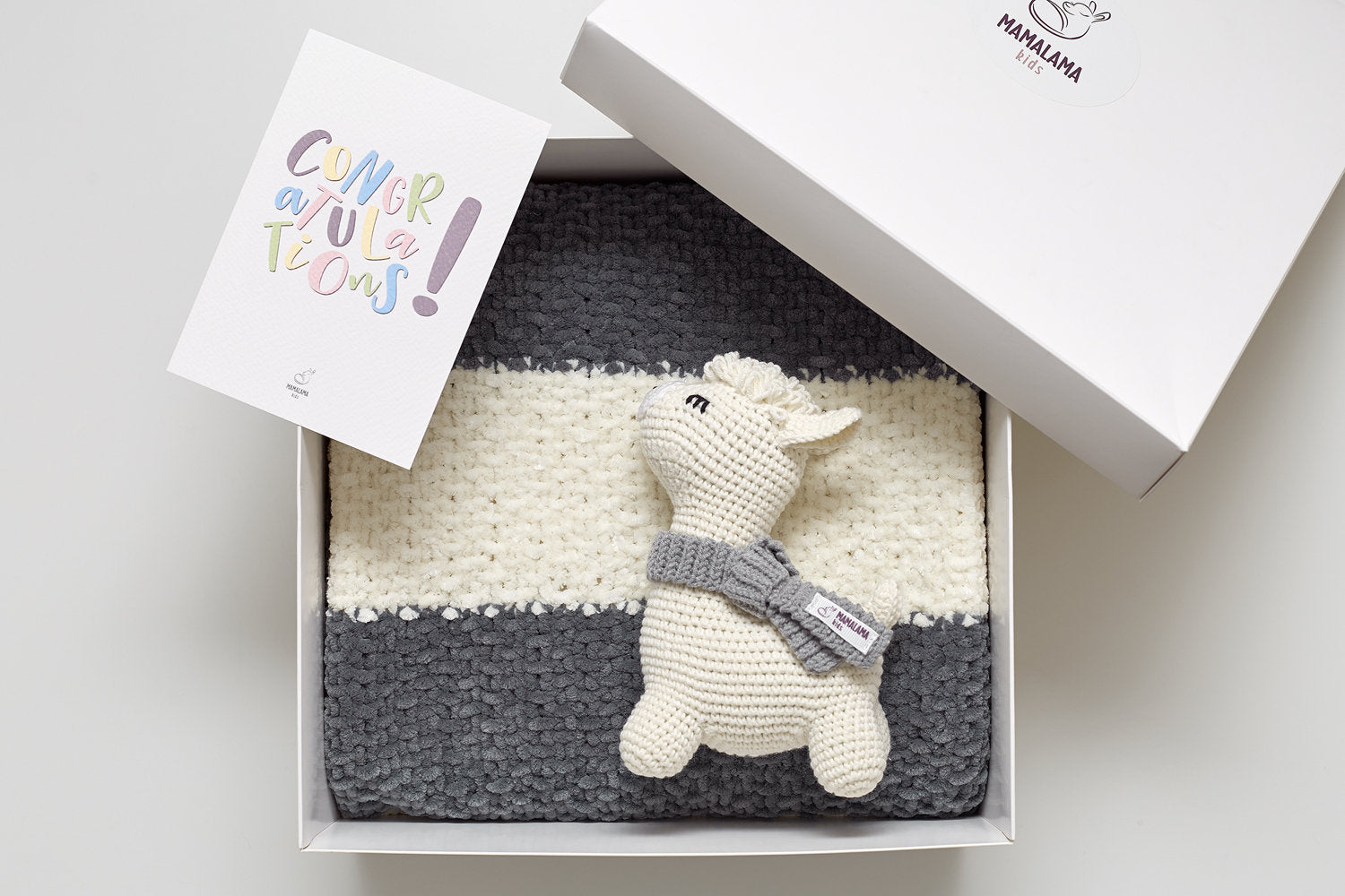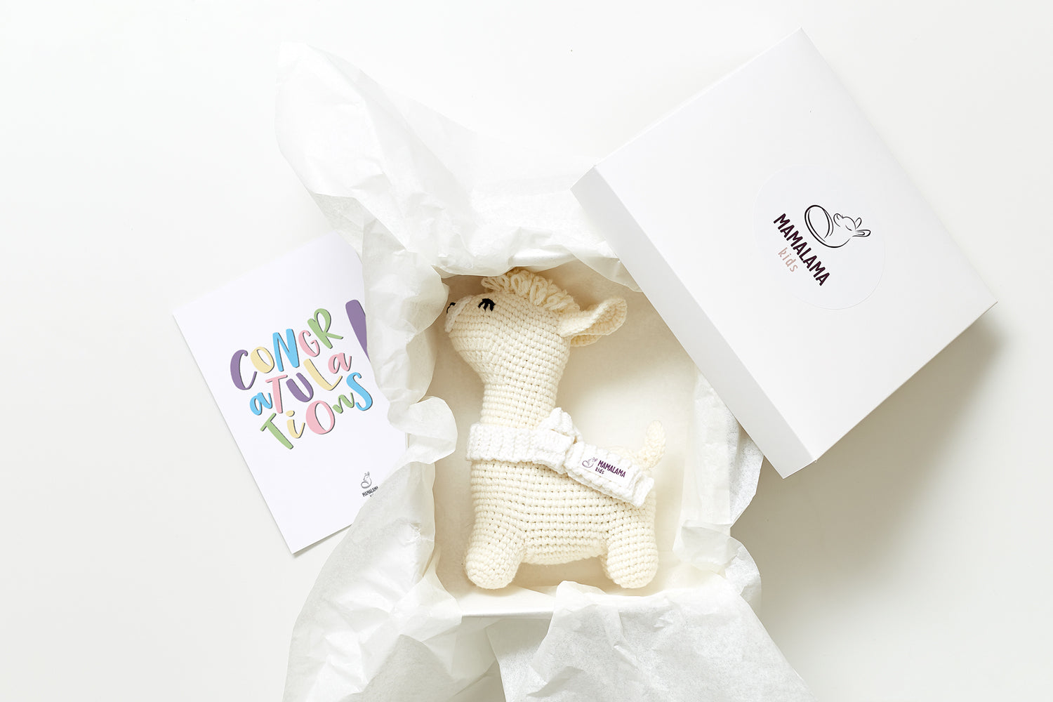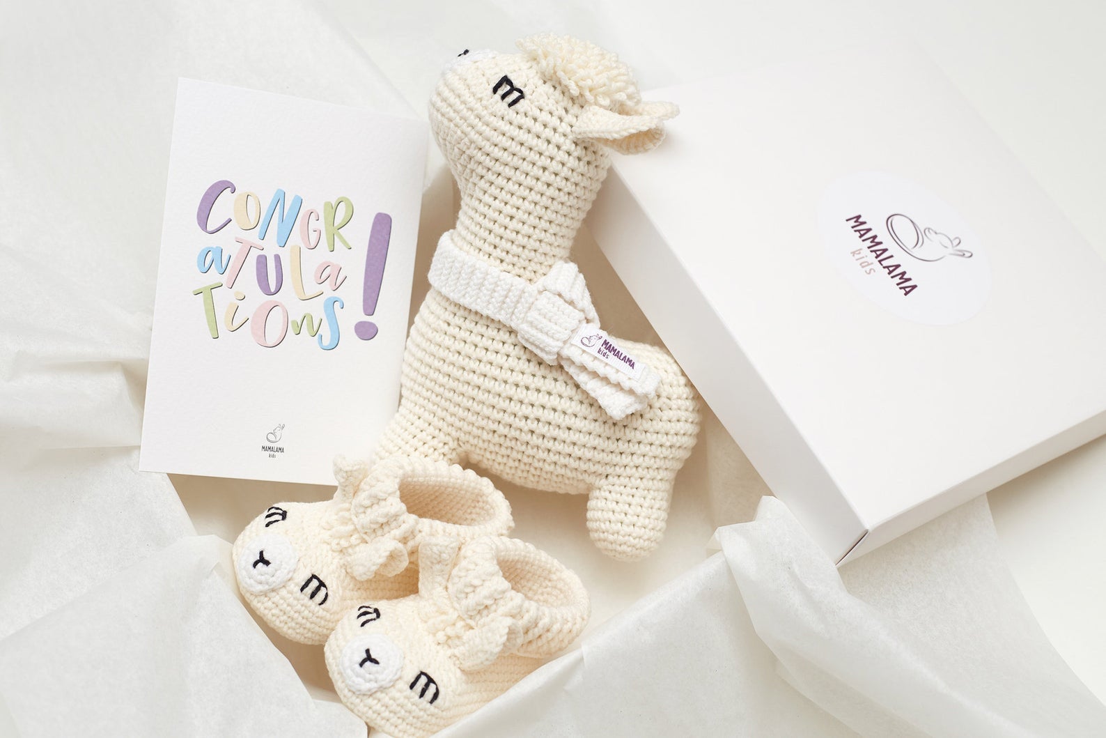 Unique pregnancy gift box for mom to be. Farm llama congratulations basket.