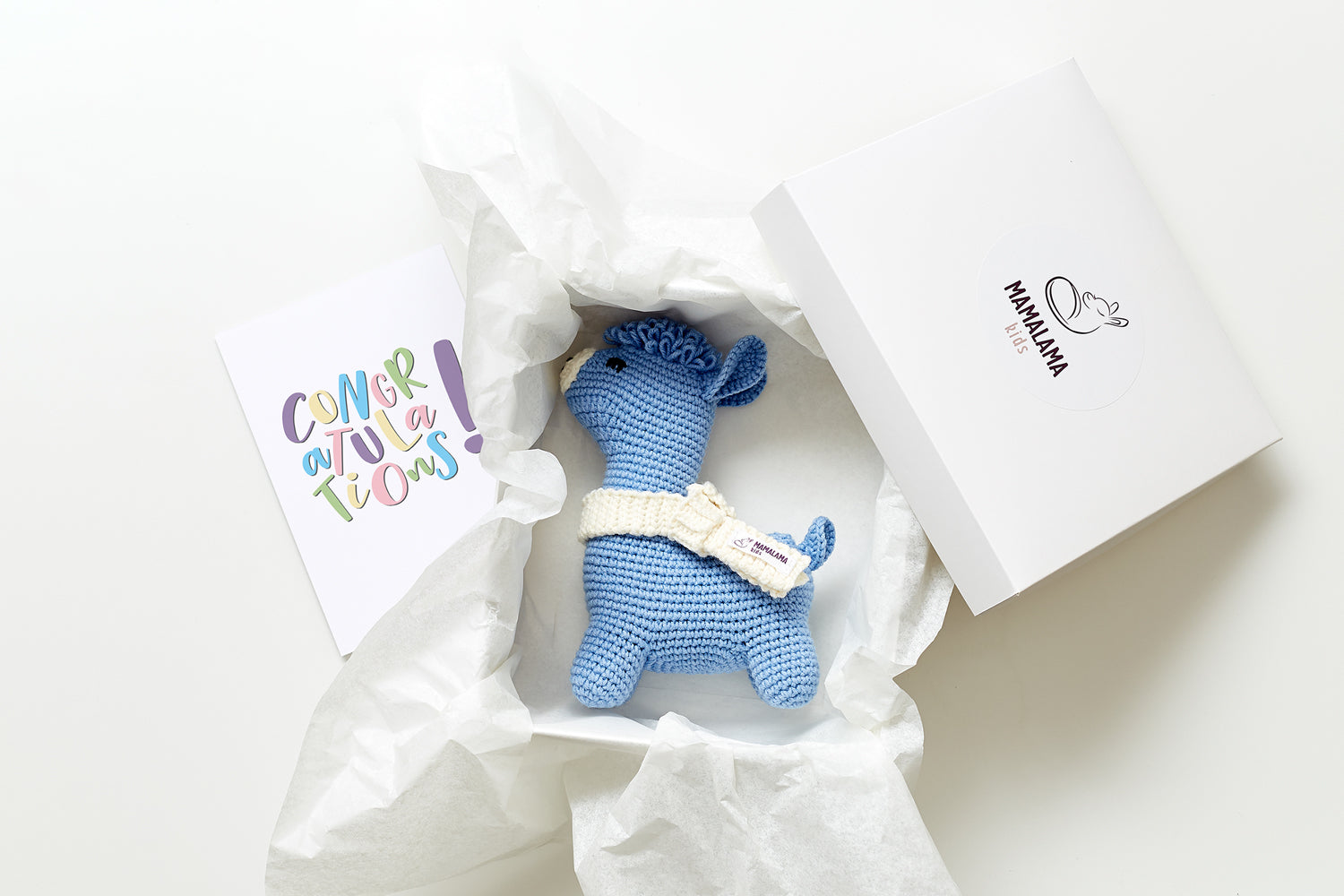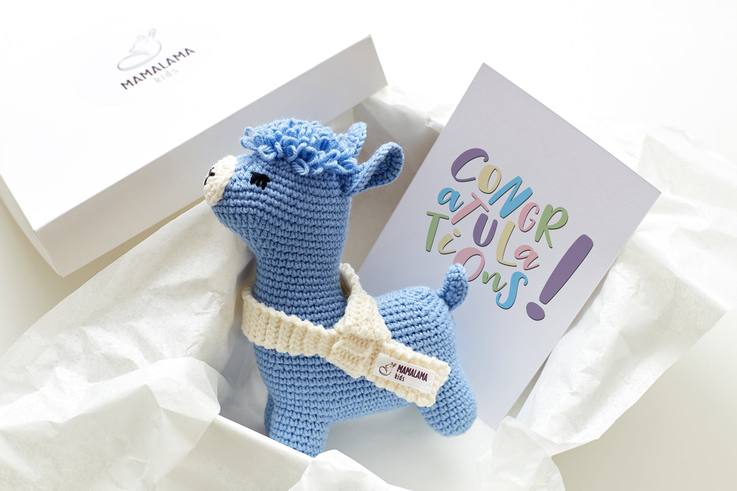 Unique pregnancy gift box for mom to be. Farm llama congratulations basket.