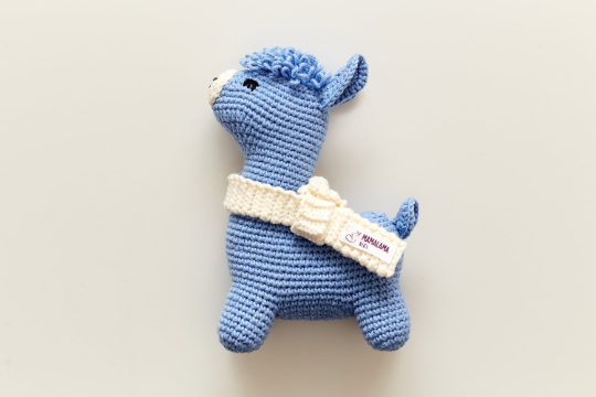 The toy is 16 cm (6.29 inch) high. Just perfect size for play, joy and decor. It is hand crocheted of the baby cotton yarn so is suitable even for newborns as a toy or teether.