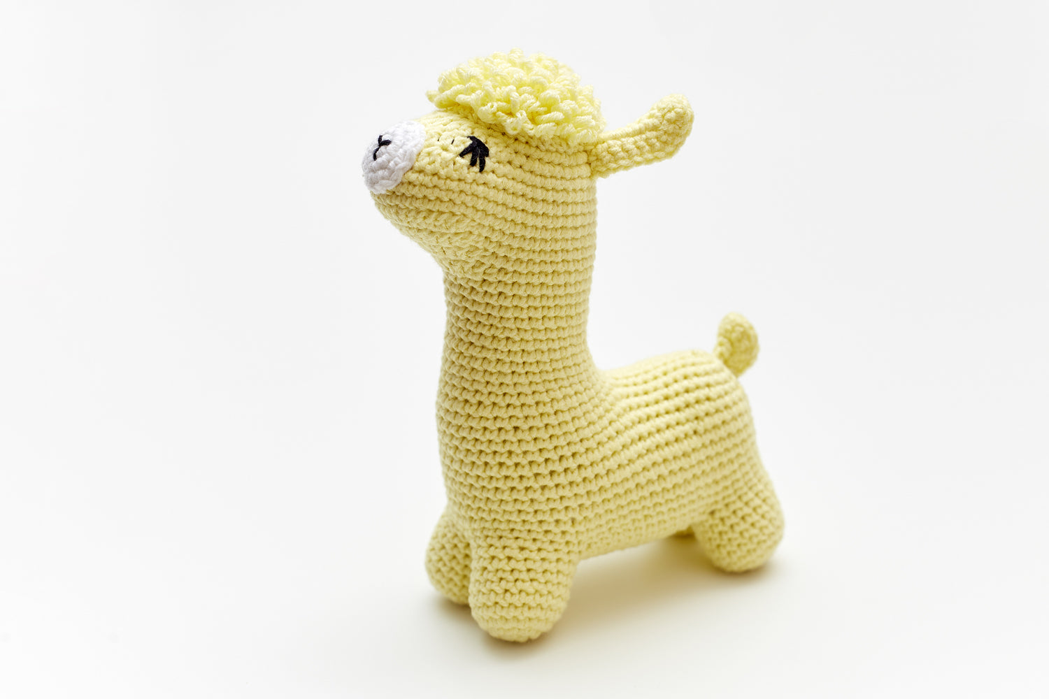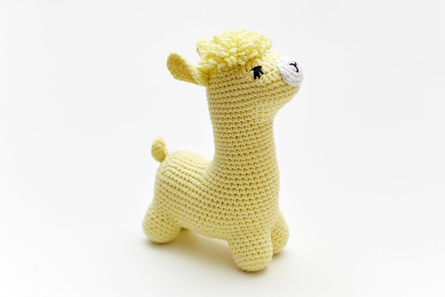 The toy is 16 cm (6.29 inch) high. Just perfect size for play, joy and decor. It is hand crocheted of the baby cotton yarn so is suitable even for newborns as a toy or teether.