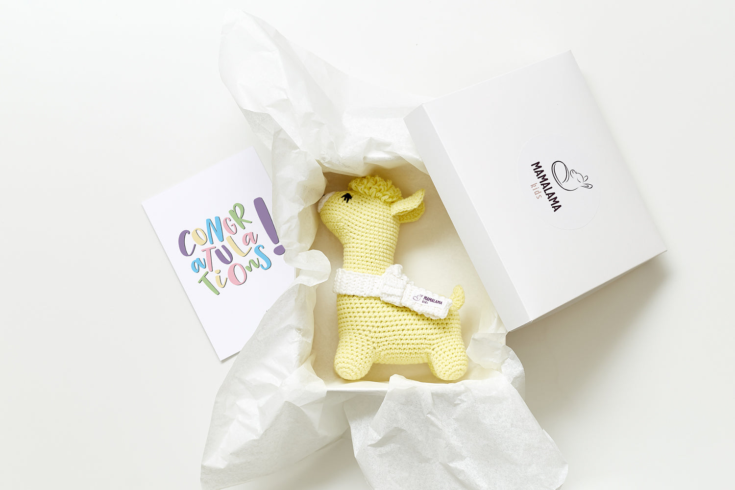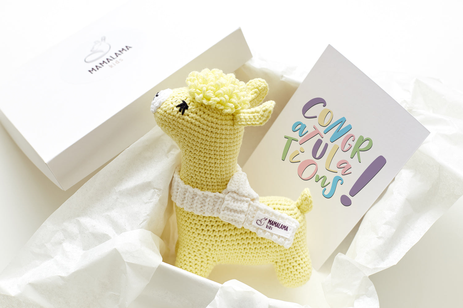 Unique pregnancy gift box for mom to be. Farm llama congratulations basket.