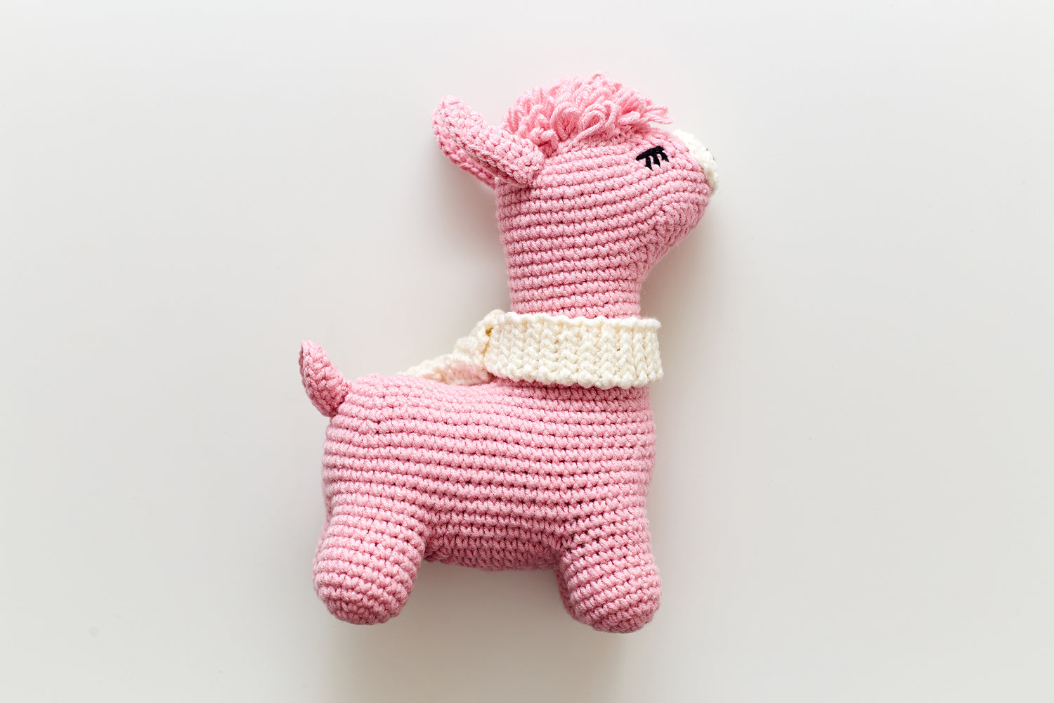 The toy is 16 cm (6.29 inch) high. Just perfect size for play, joy and decor. The toy and the booties are hand crocheted of the baby cotton yarn so are suitable even for newborns as a toy or teether.