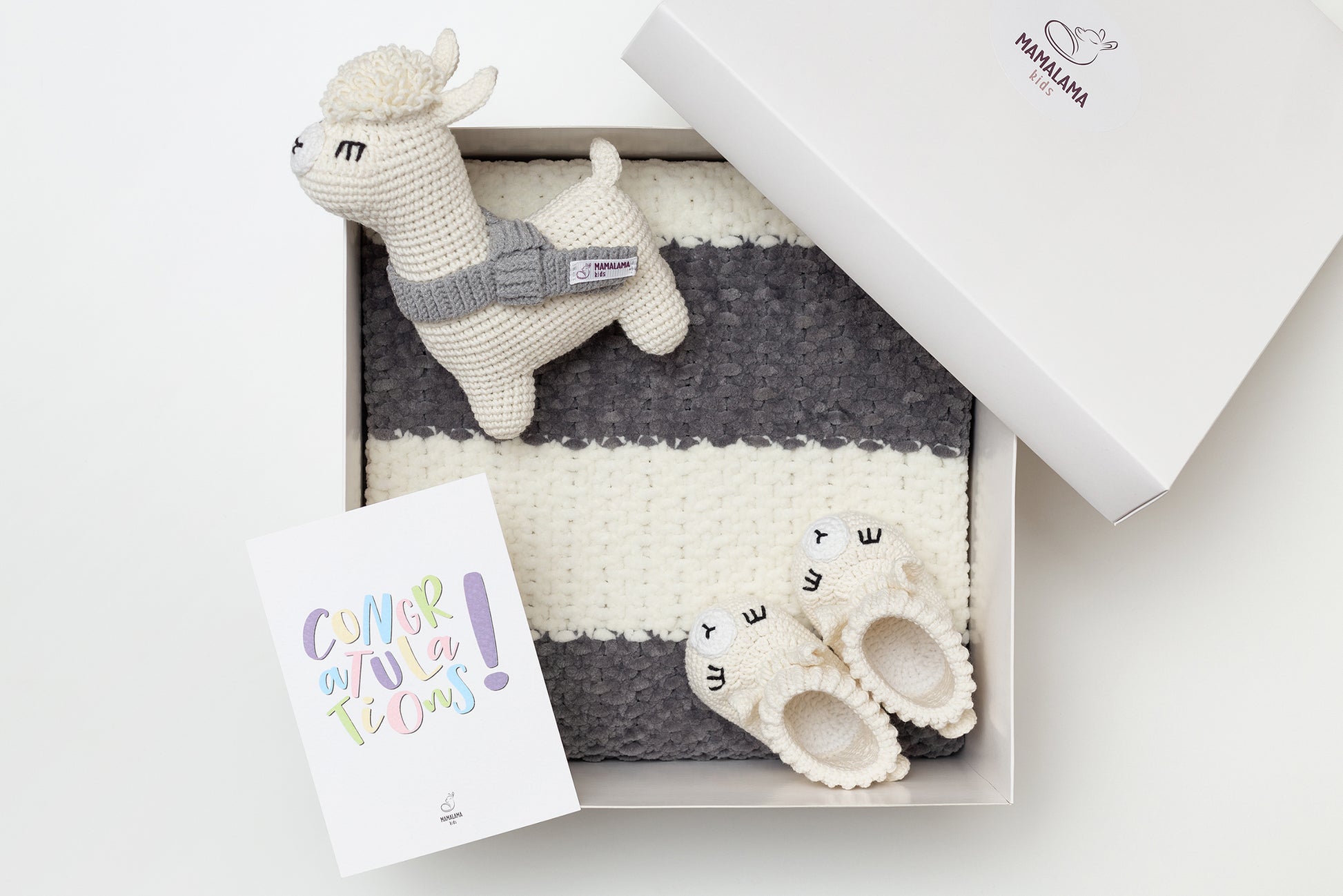 Llama toy & blanket & booties gift box Gray