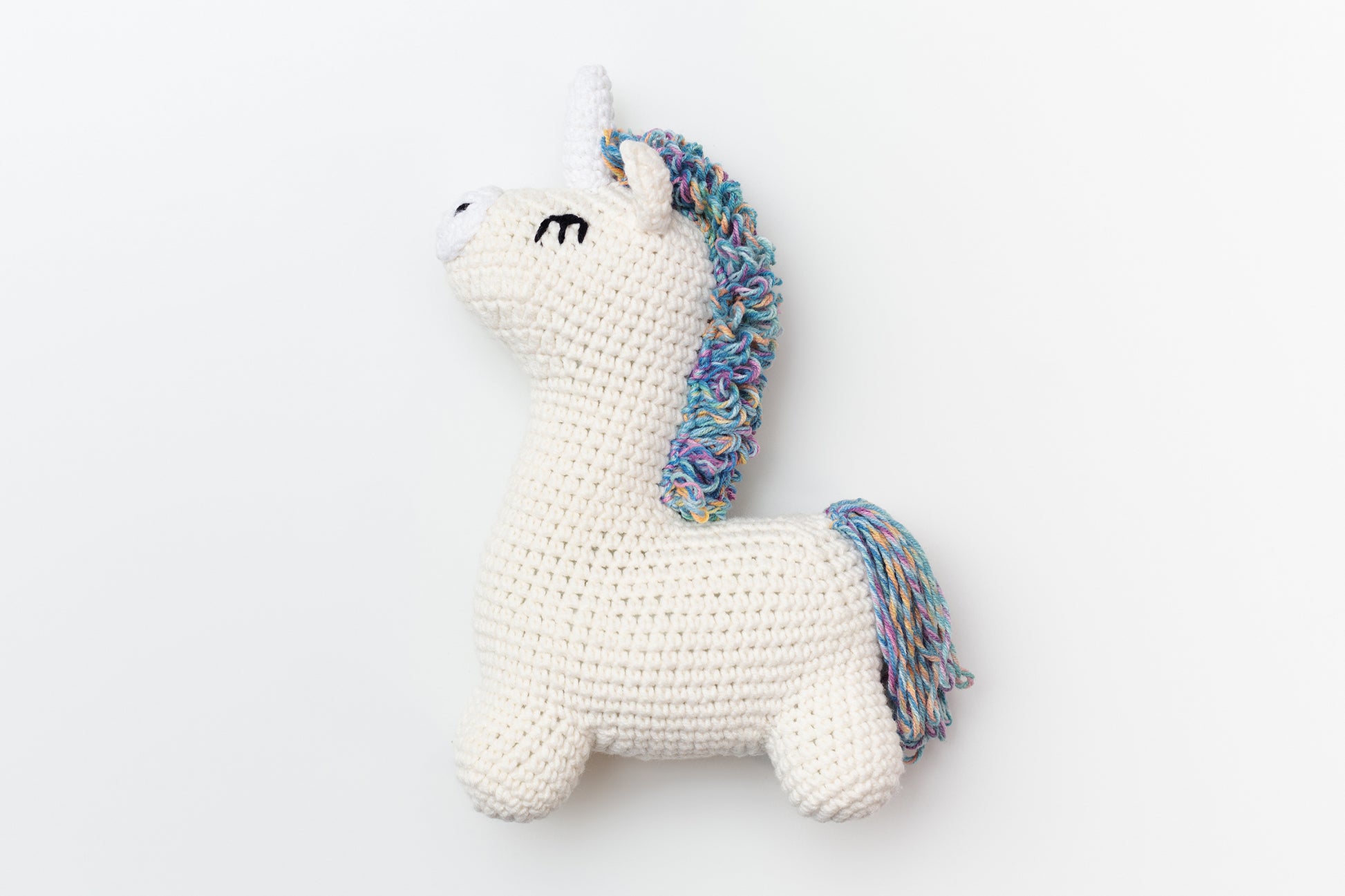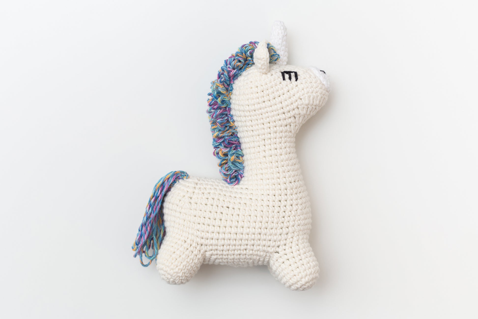 The toy is 16 cm (6.29 inch) high. Just perfect size for play, joy and decor. It is hand crocheted of the baby cotton yarn so is suitable even for newborns as a toy or teether.